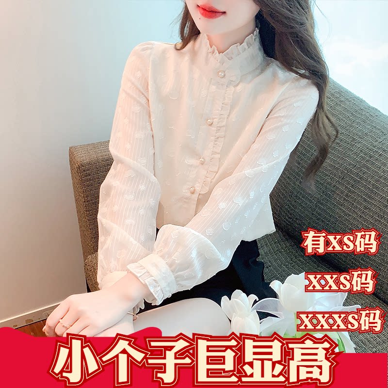 Плюс маленький размер, новая весенняя женская одежда для невысоких людей ростом 150 см, размер XXXS, рубашка с длинными рукавами и воротником-стойкой в виде грибка