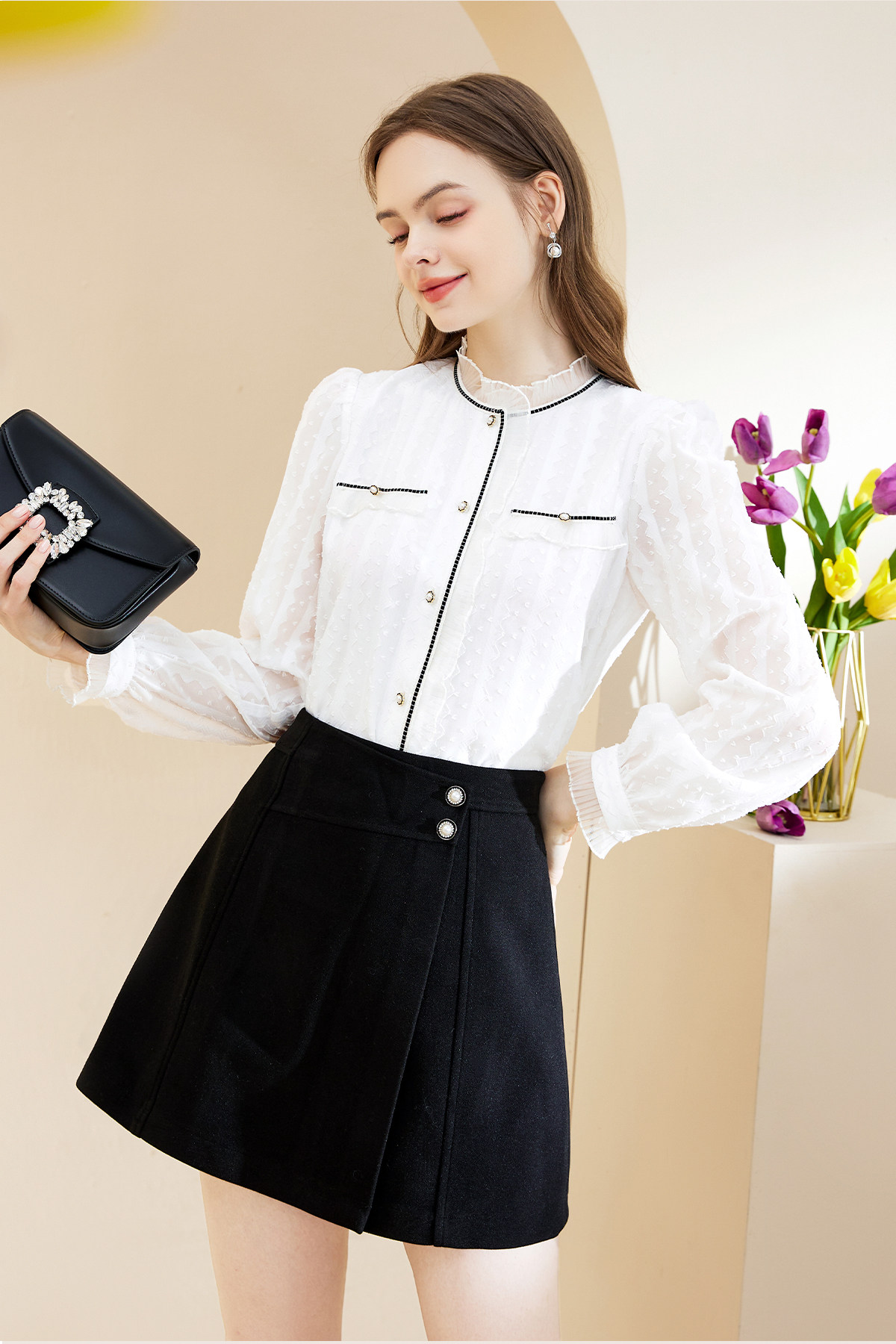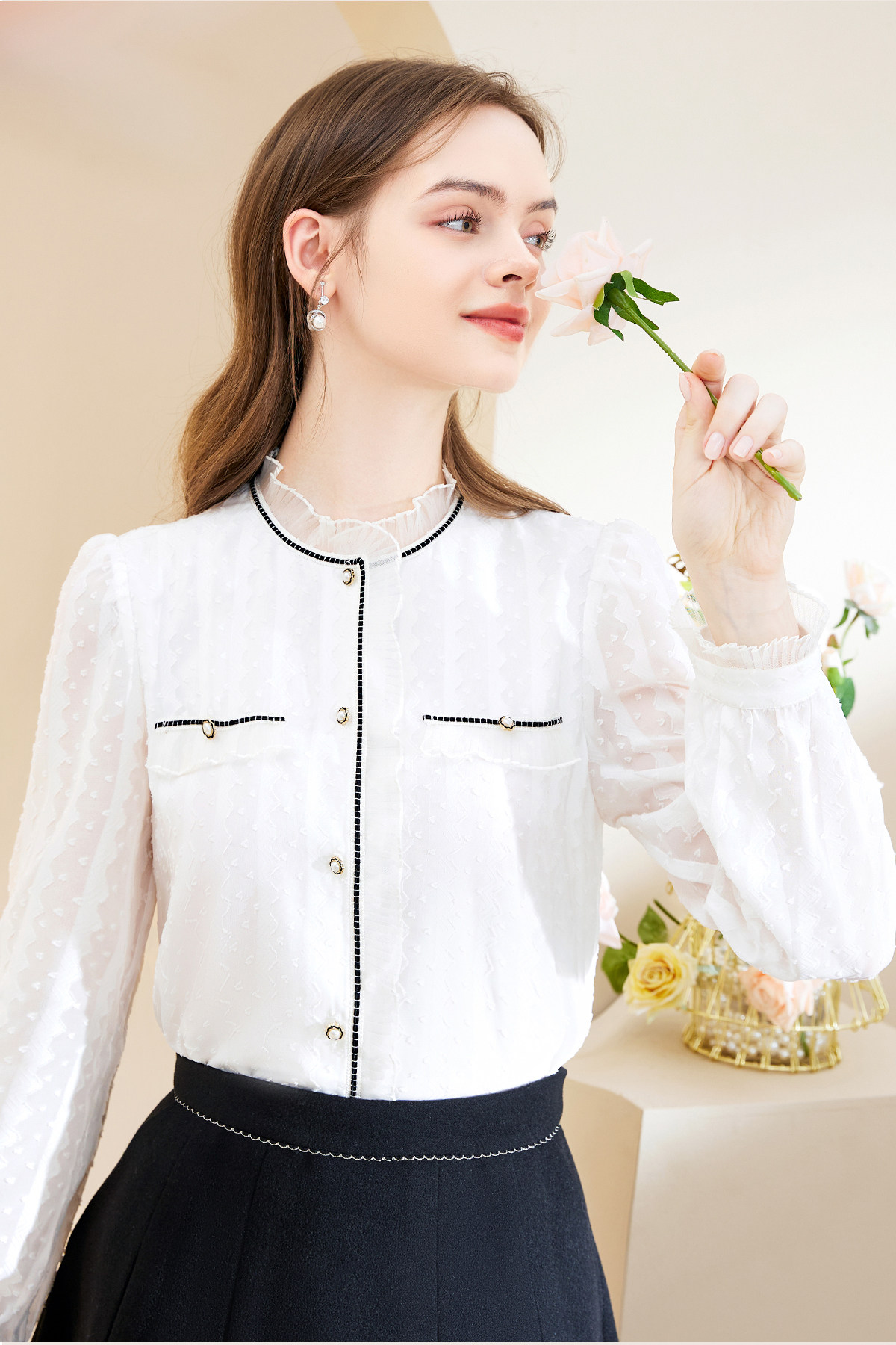 Марлевая шифоновая осенняя рубашка, в стиле Шанель