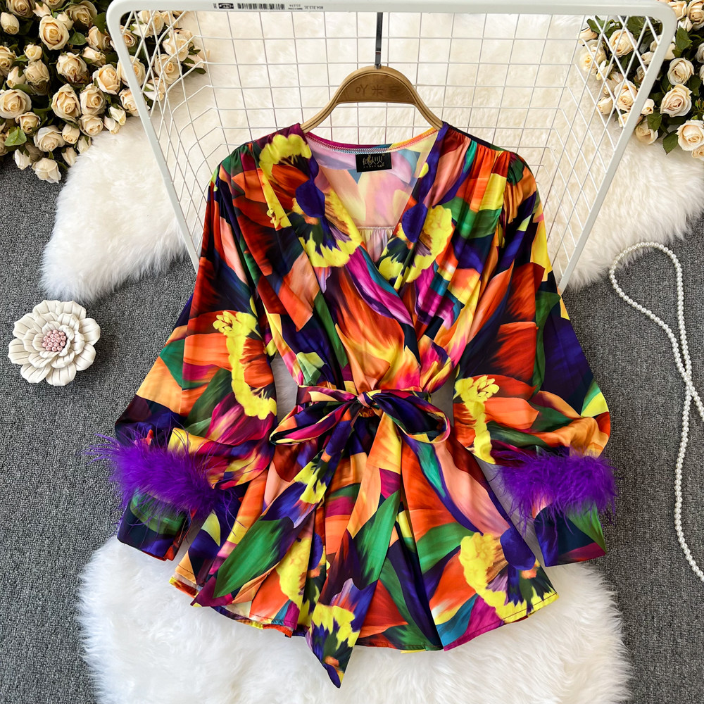 Модный корсет, фонарь, рубашка, европейский стиль, V-образный вырез, свободный крой, в западном стиле