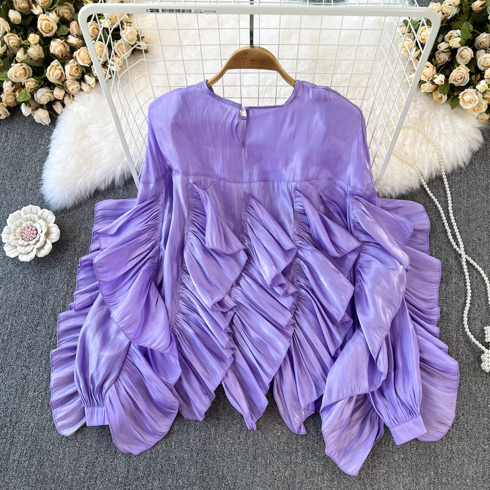 Осенний ретро лонгслив с круглым воротником, рубашка, европейский стиль, оверсайз, в западном стиле