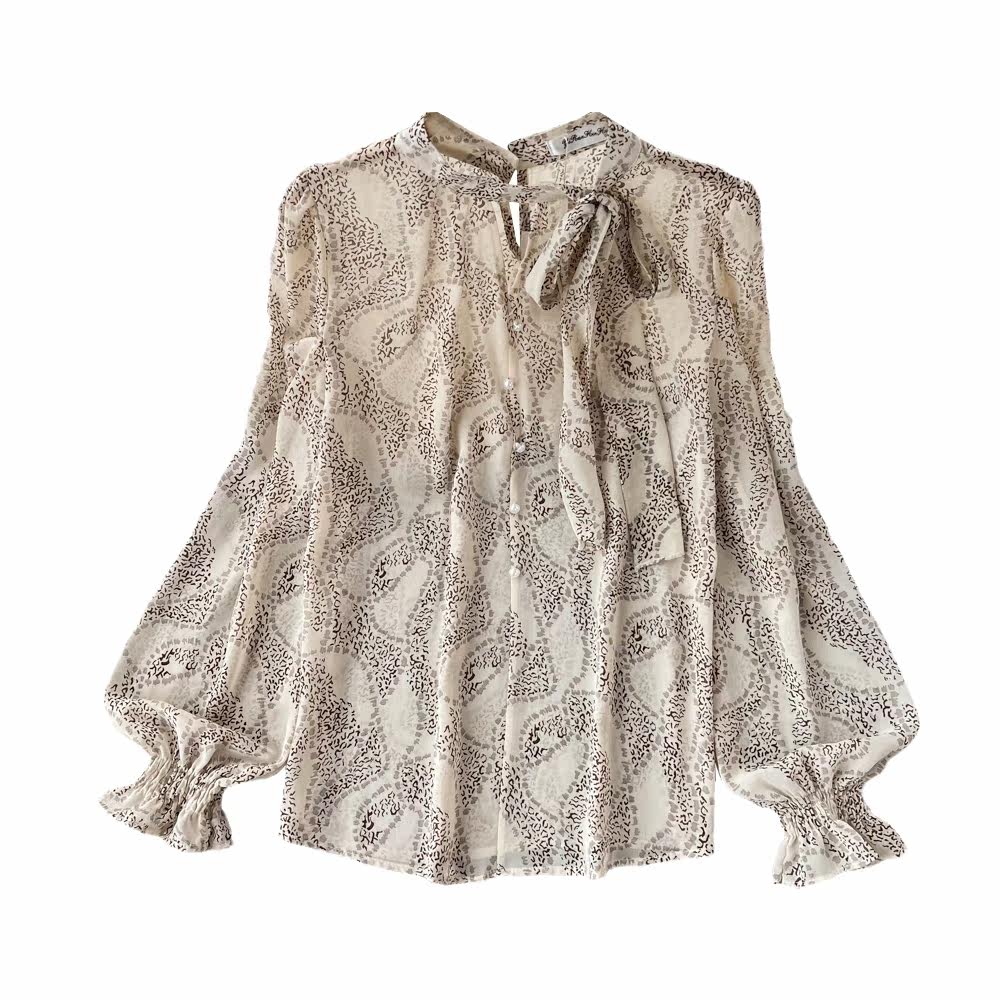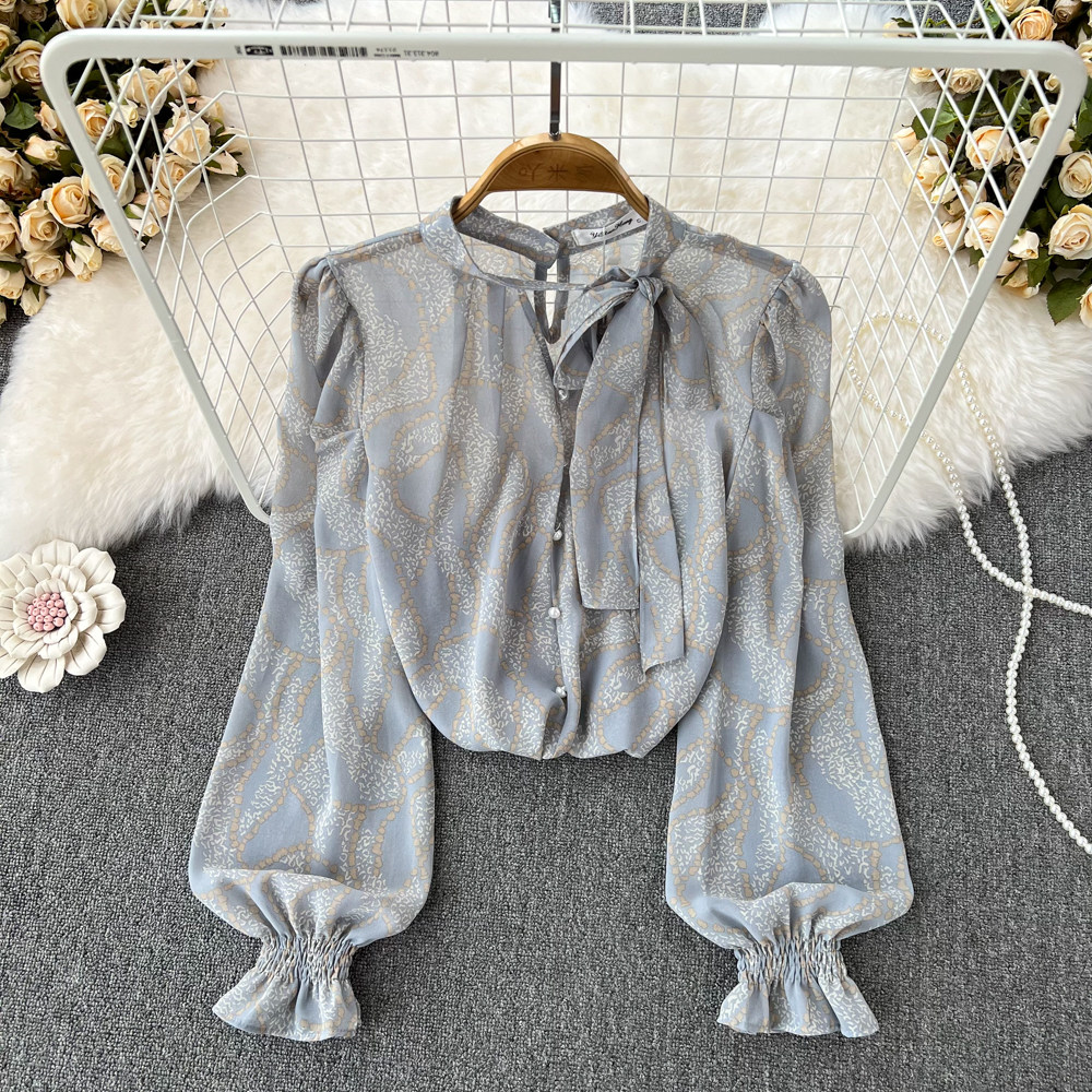 Шифоновая осенняя рубашка с бантиком, милый лонгслив, свободный крой, в корейском стиле, V-образный вырез