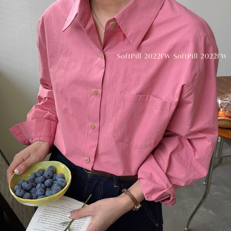 Хлопковый лонгслив, осенняя розовая милая рубашка, в корейском стиле