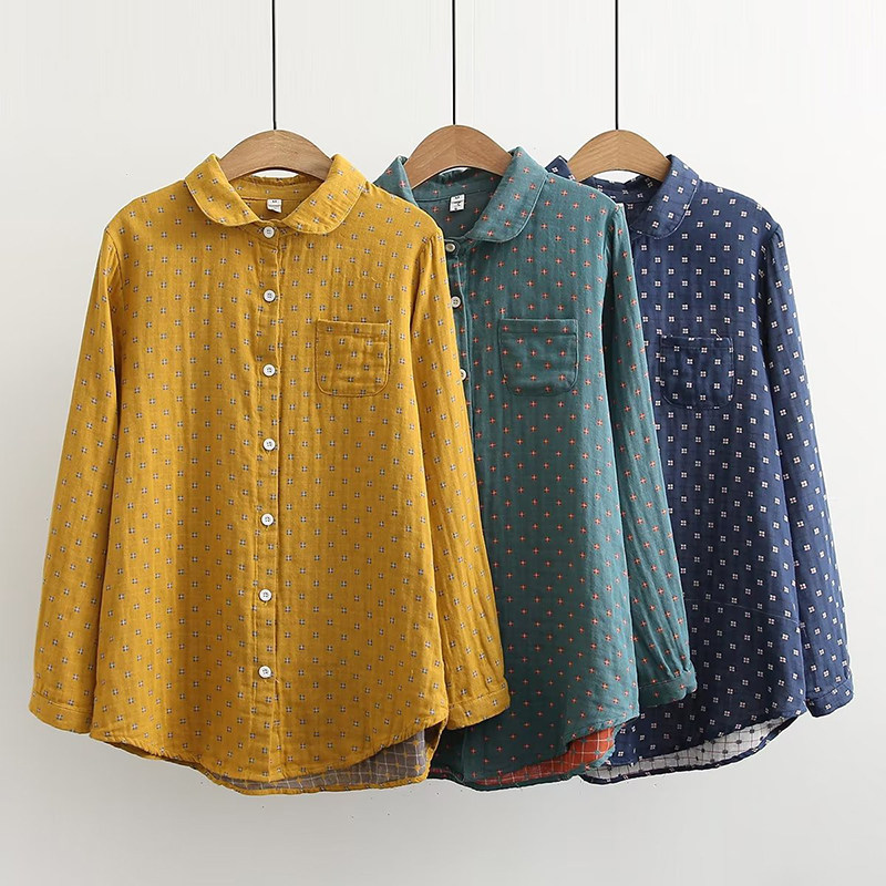 Осенняя рубашка, ретро хлопковый лонгслив, оверсайз, свободный крой