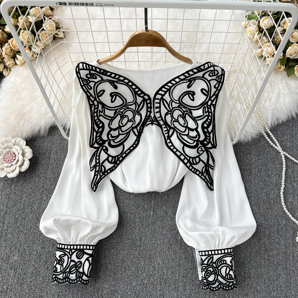 Кружевная модная рубашка с круглым воротником, свободный крой, оверсайз