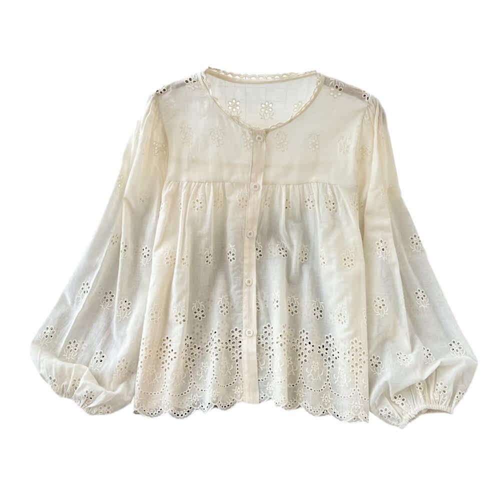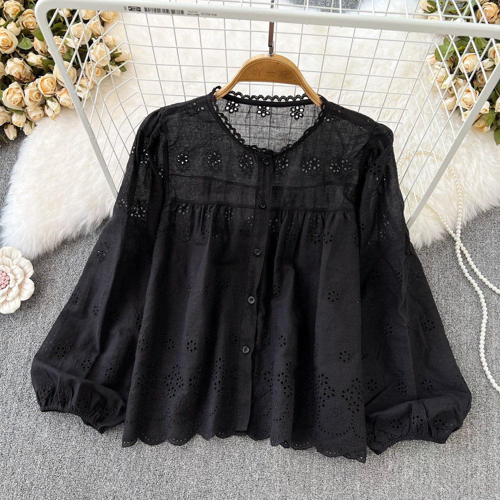 Осенний лонгслив с круглым воротником, рубашка, в корейском стиле, с вышивкой, свободный крой, в западном стиле