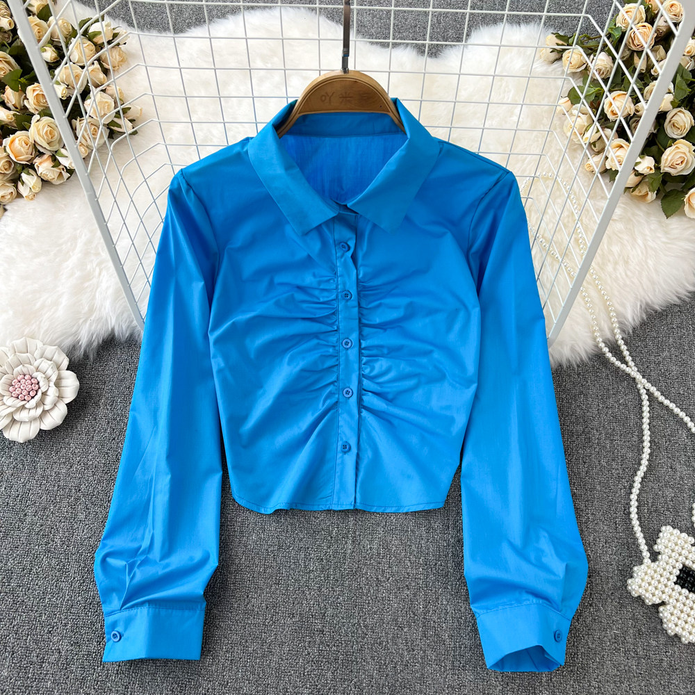 Лонгслив, осенняя дизайнерская короткая рубашка, в обтяжку, тренд сезона, высокая талия