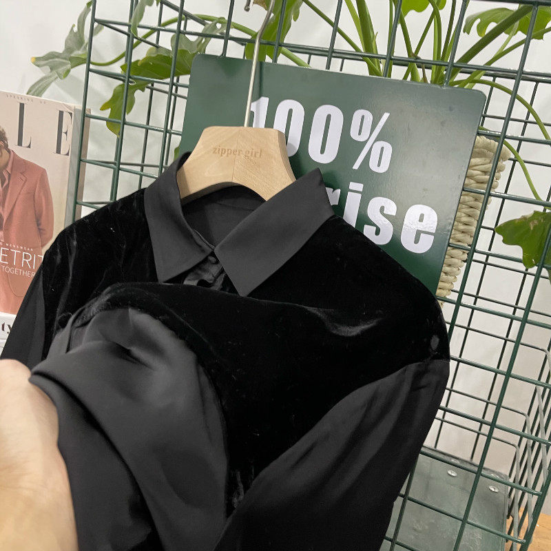 | Цвет: | 90100 черная бархатная рубашка |