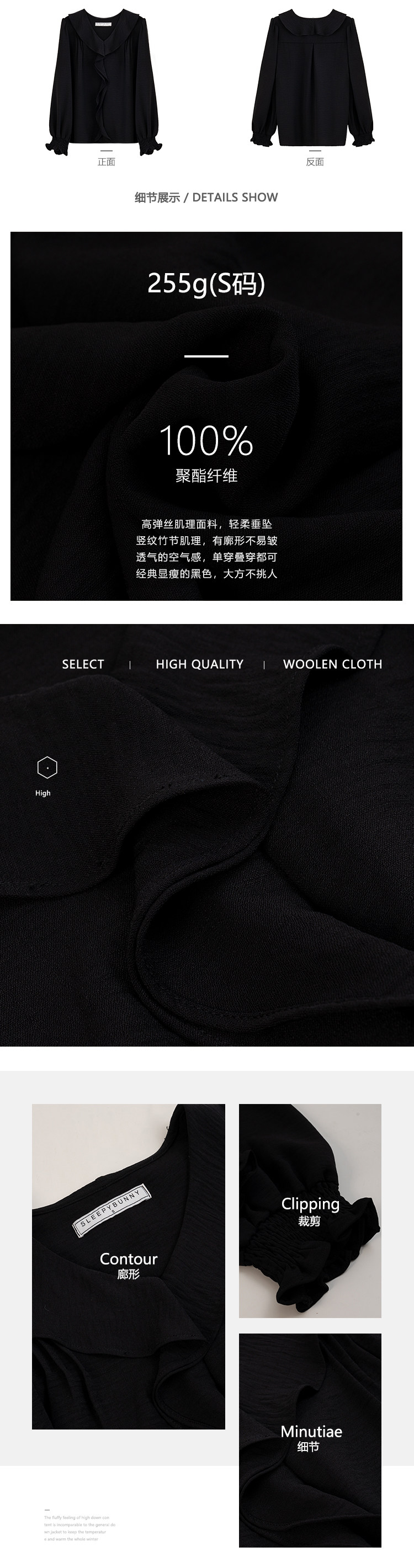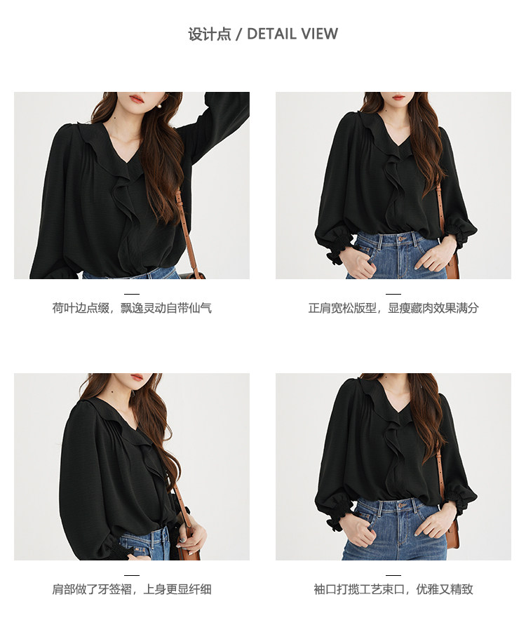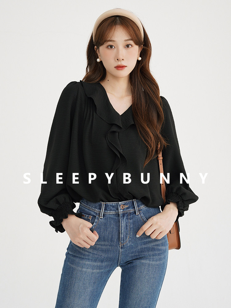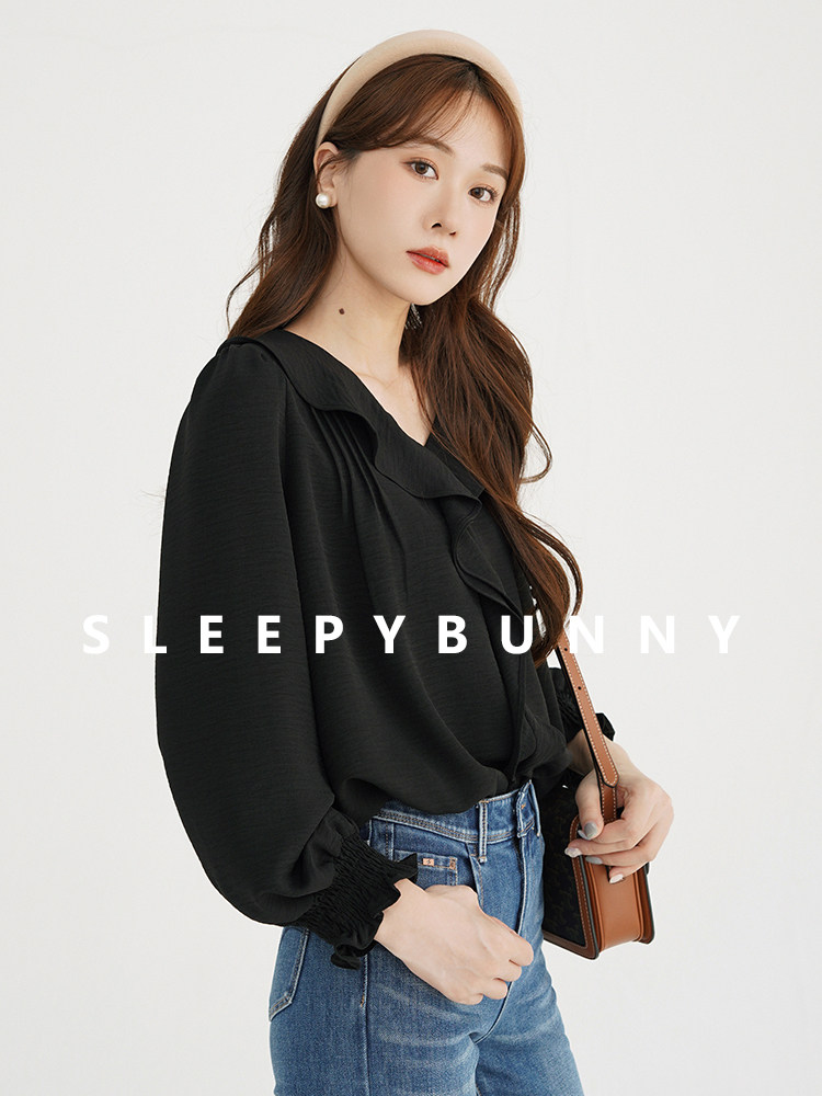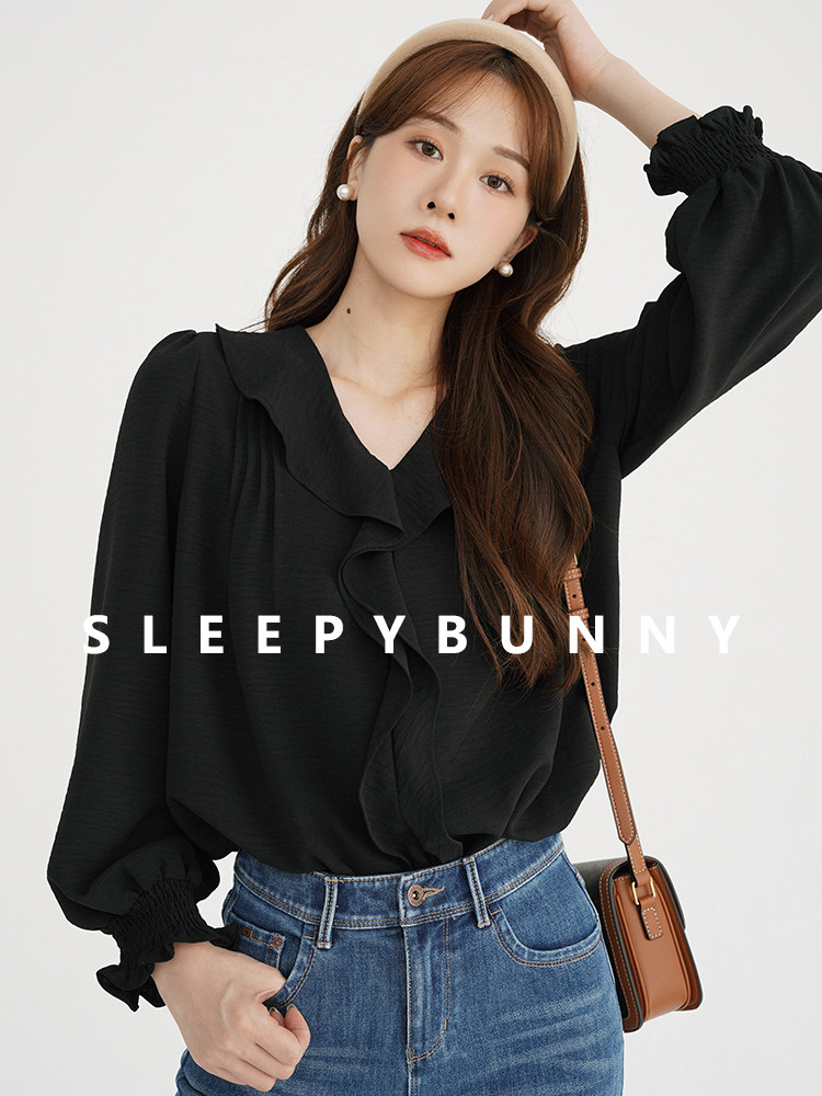 Черная осенняя рубашка, V-образный вырез, французский стиль, подходит для подростков