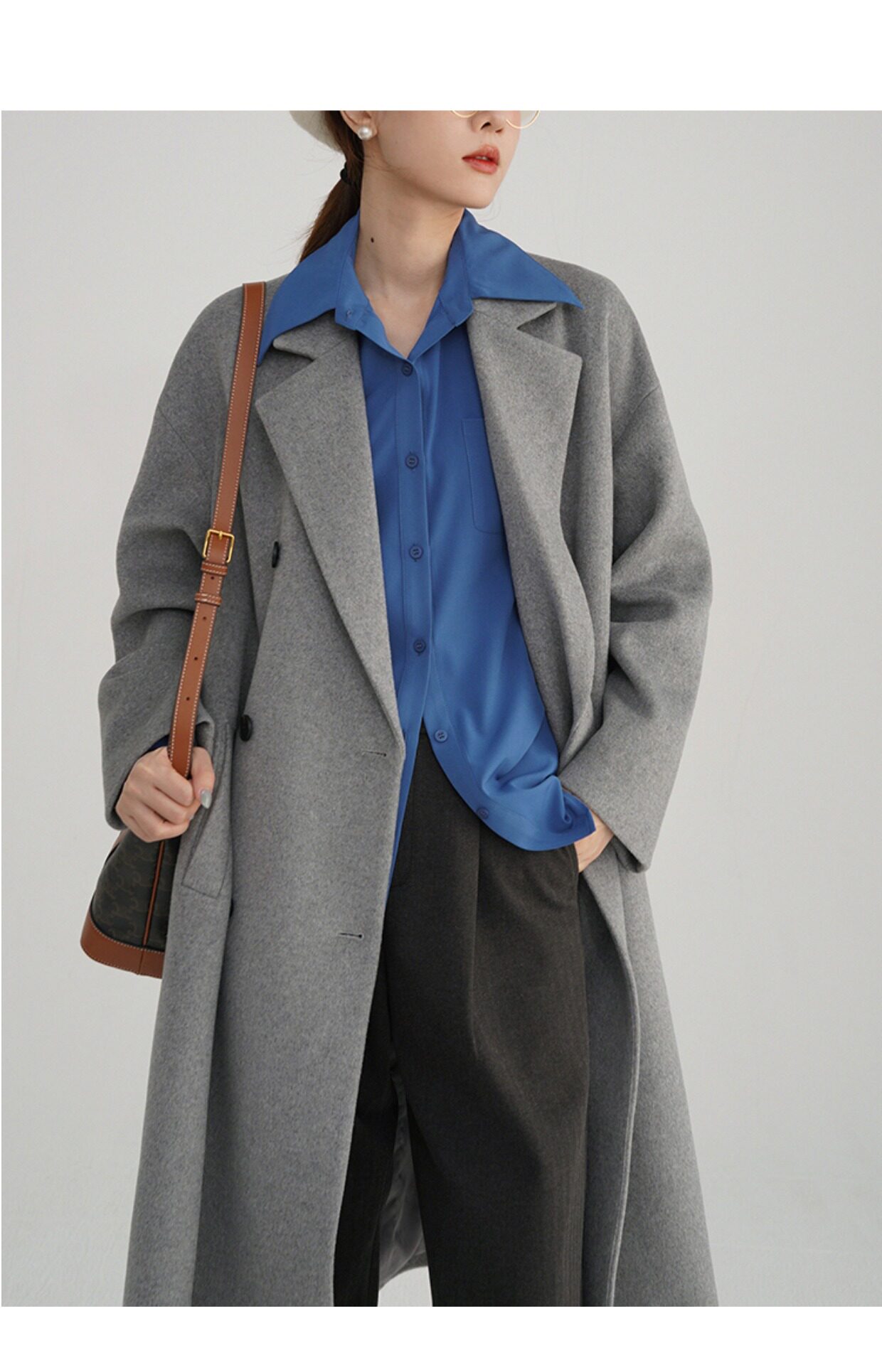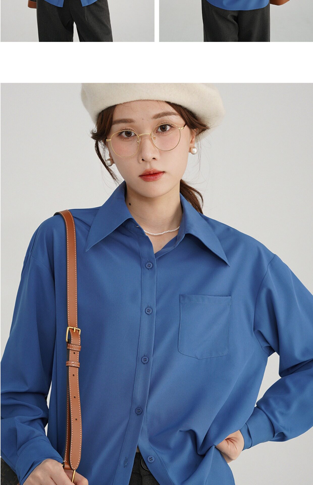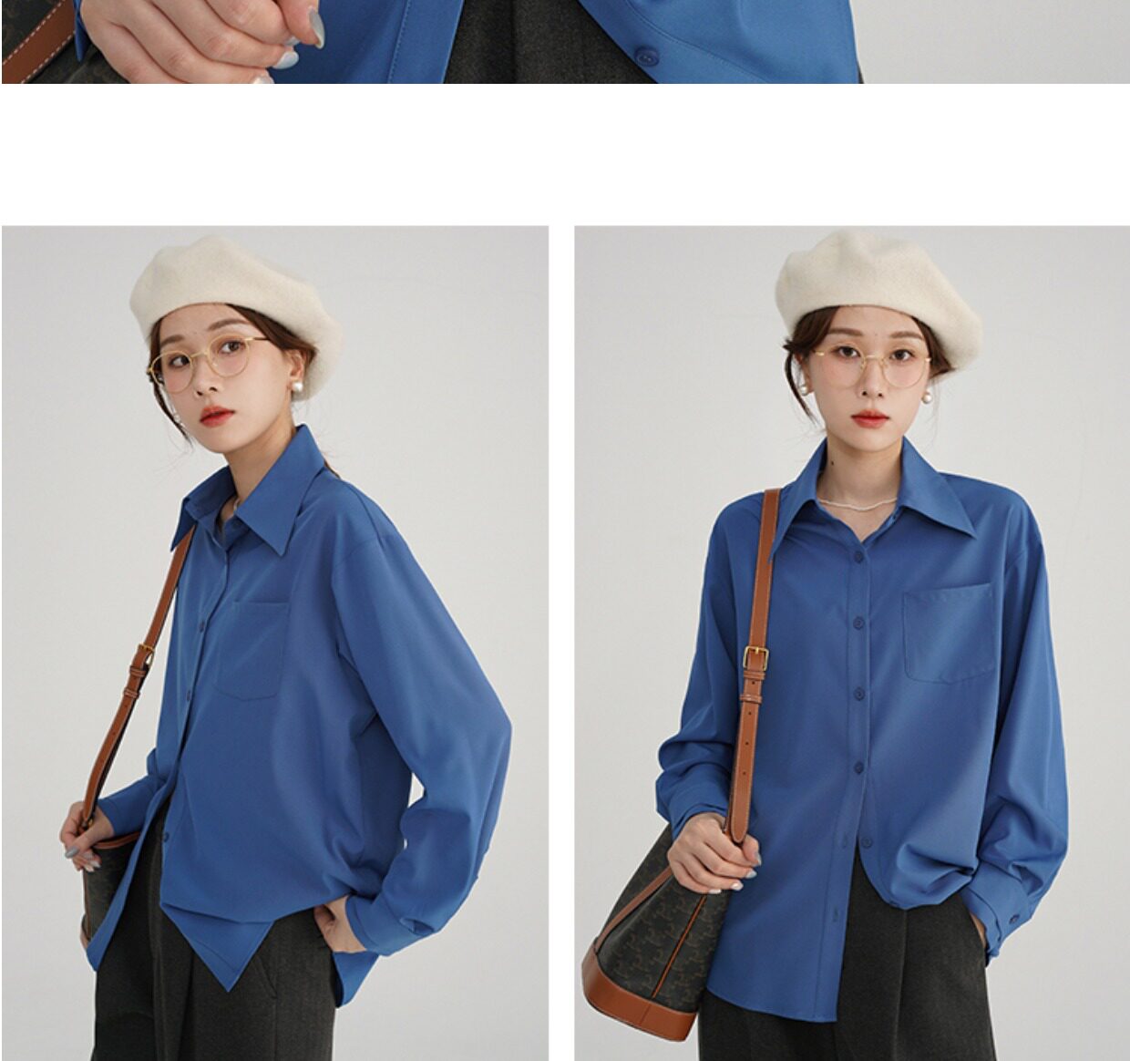 Синяя осенняя рубашка, французский стиль, оверсайз