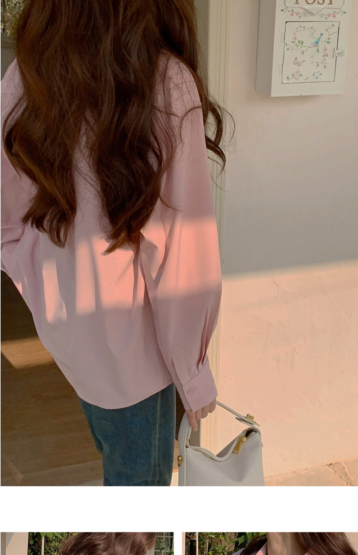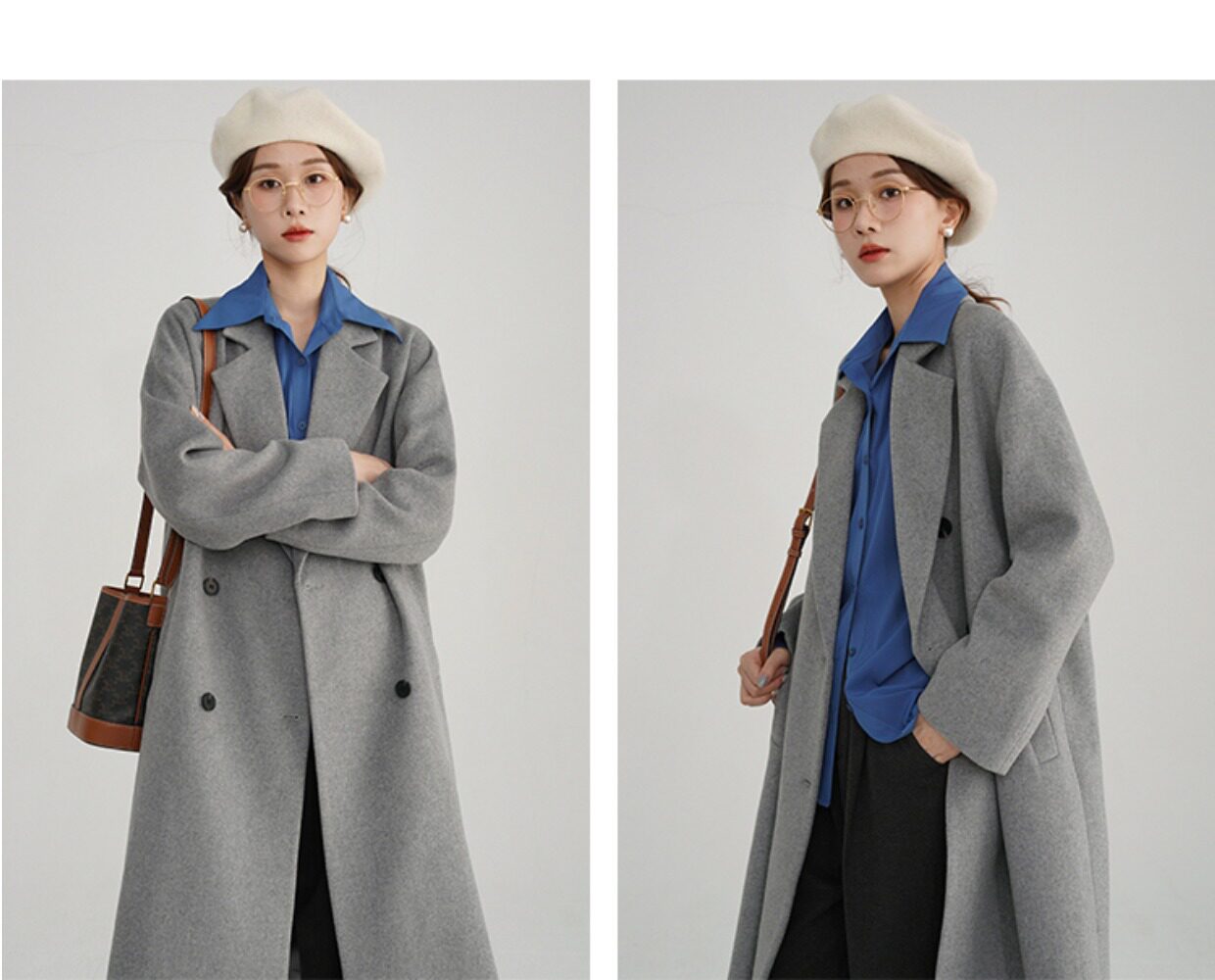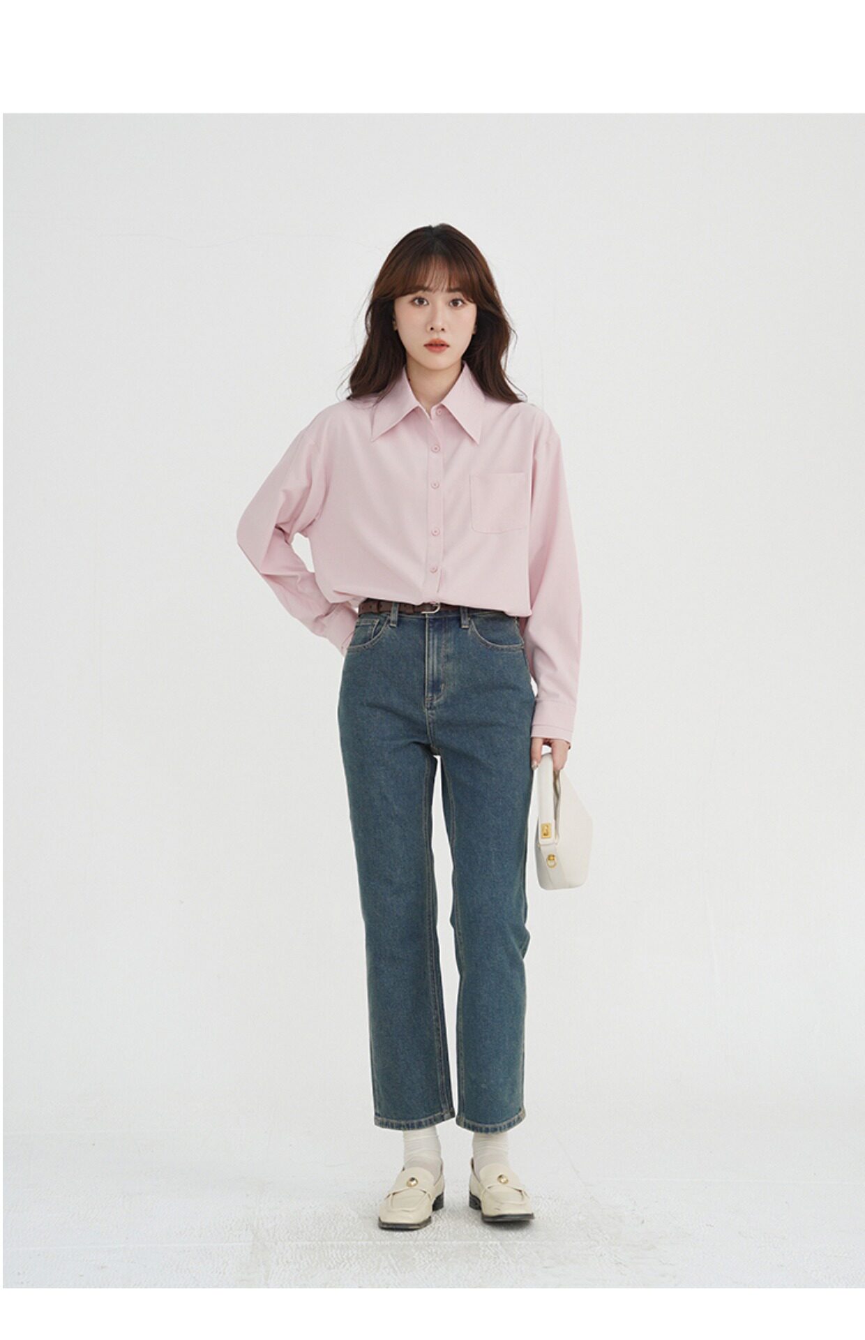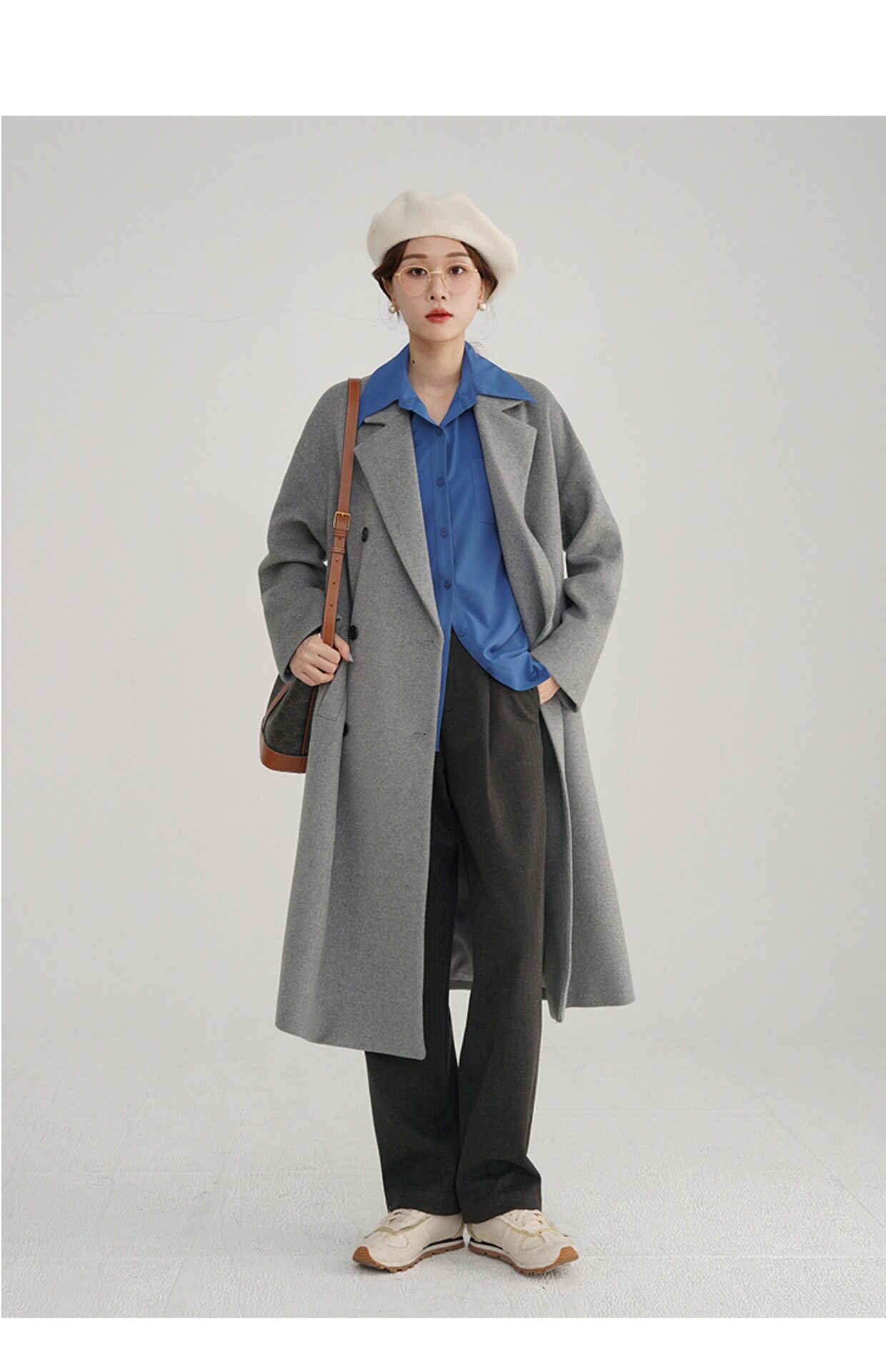 Синяя осенняя рубашка, французский стиль, оверсайз