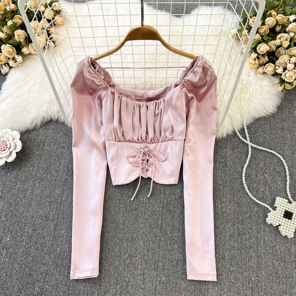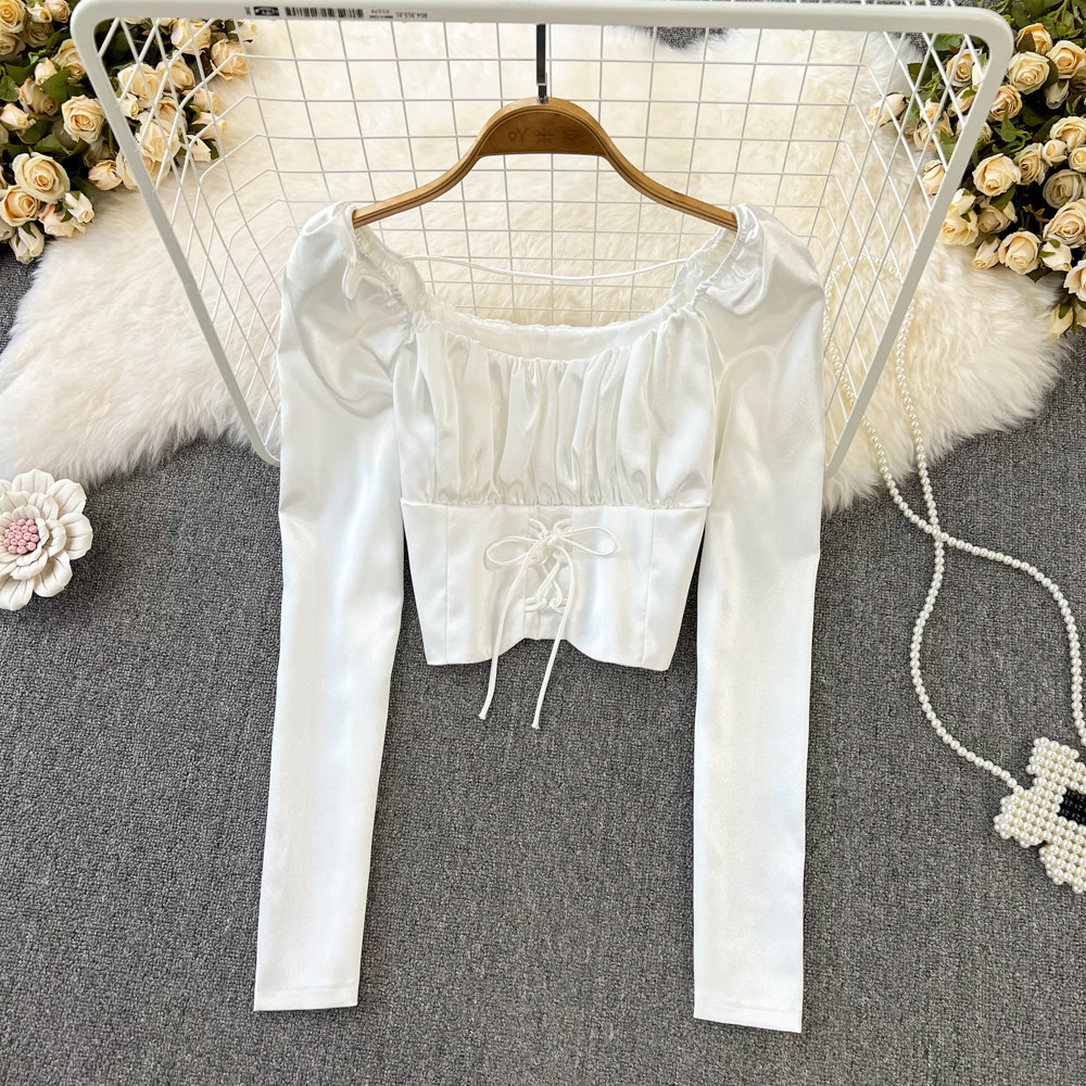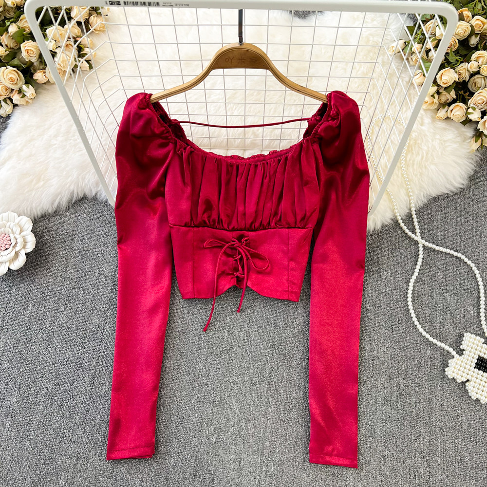 Осенний сексуальный приталенный лонгслив, короткая рубашка, квадратный вырез, в западном стиле