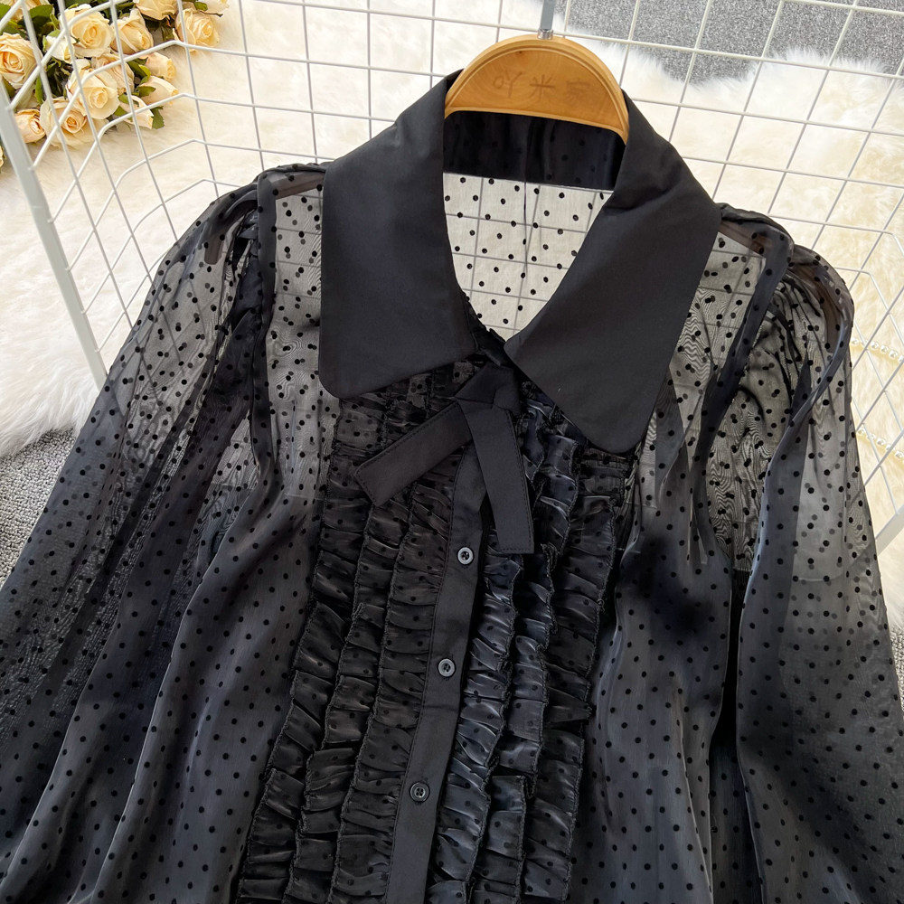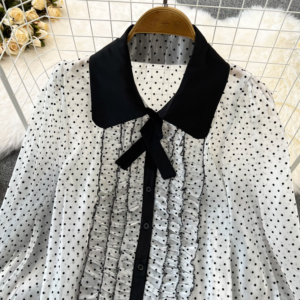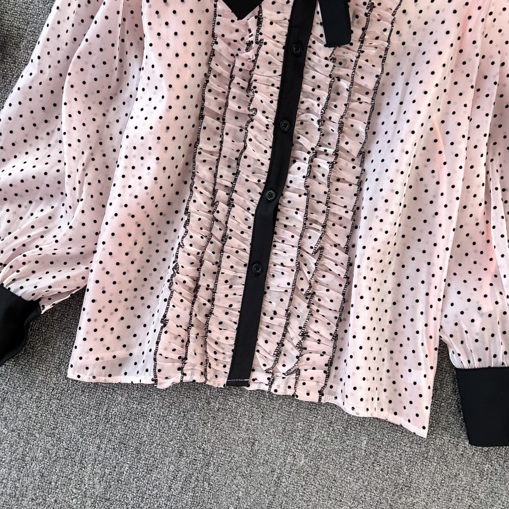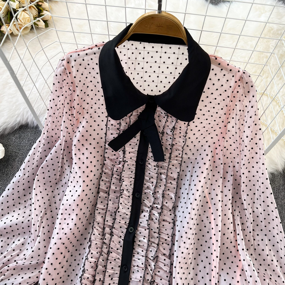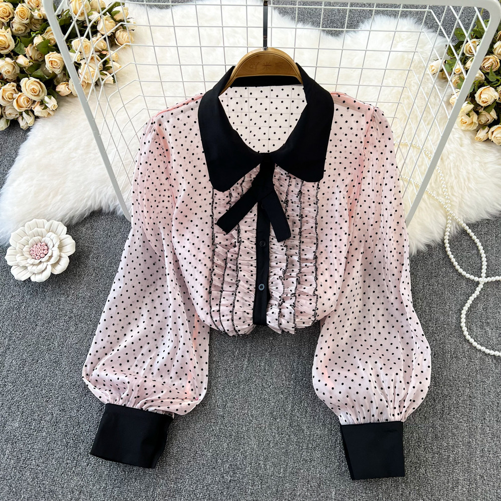 Шифоновый осенний демисезонный лонгслив, рубашка, коллекция 2022, в корейском стиле
