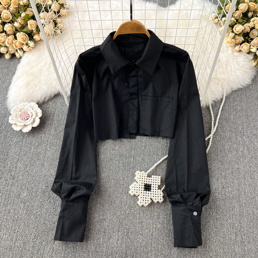 Ретро короткая рубашка для отдыха, французский стиль, изысканный стиль, рукава фонарики, высокая талия