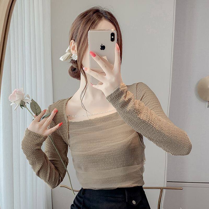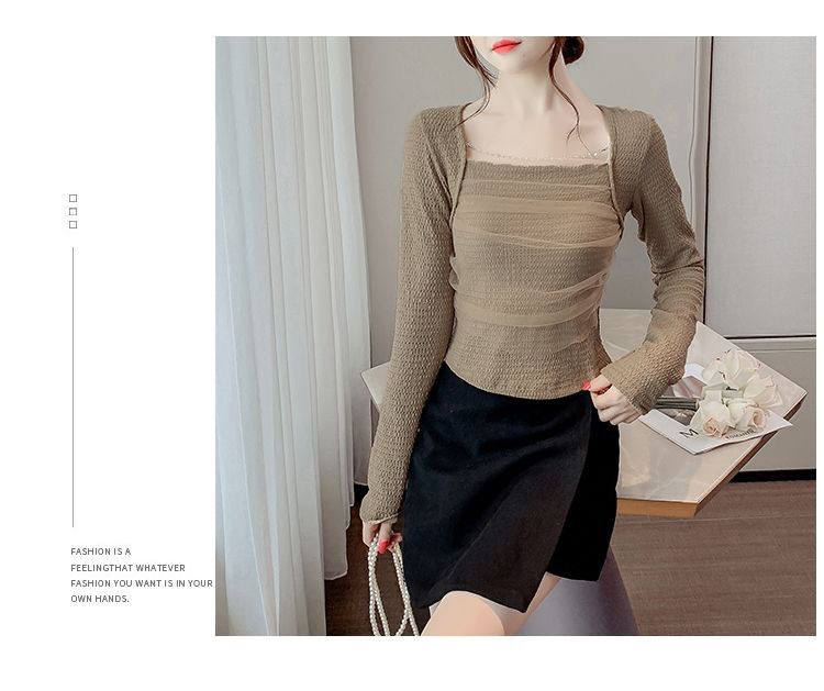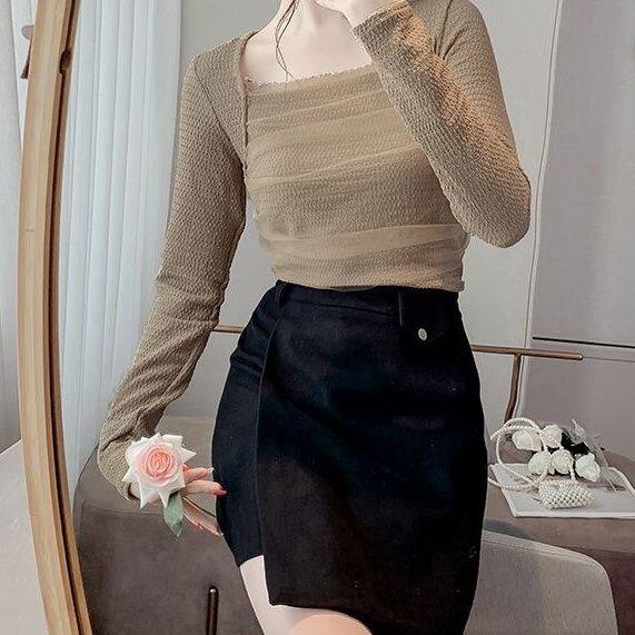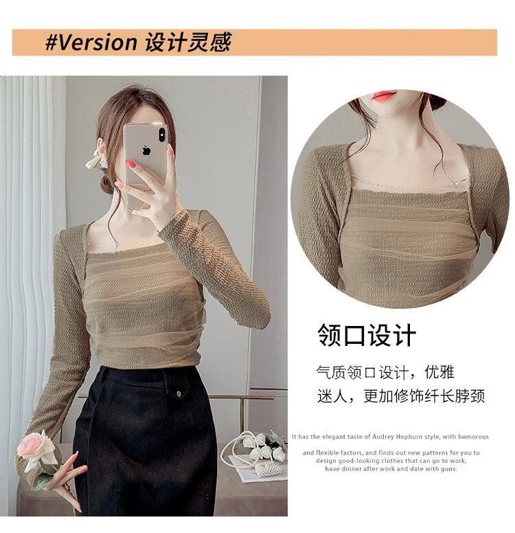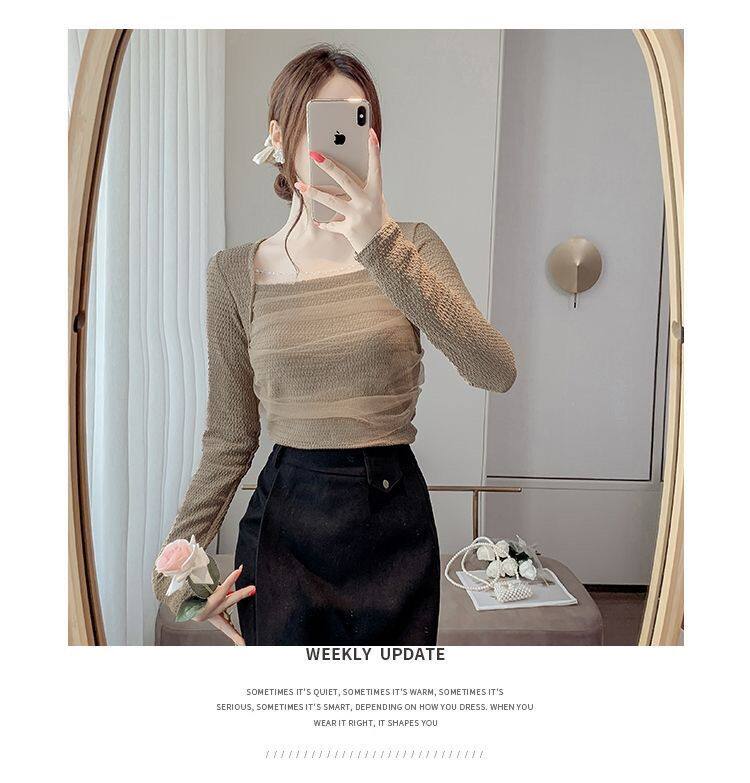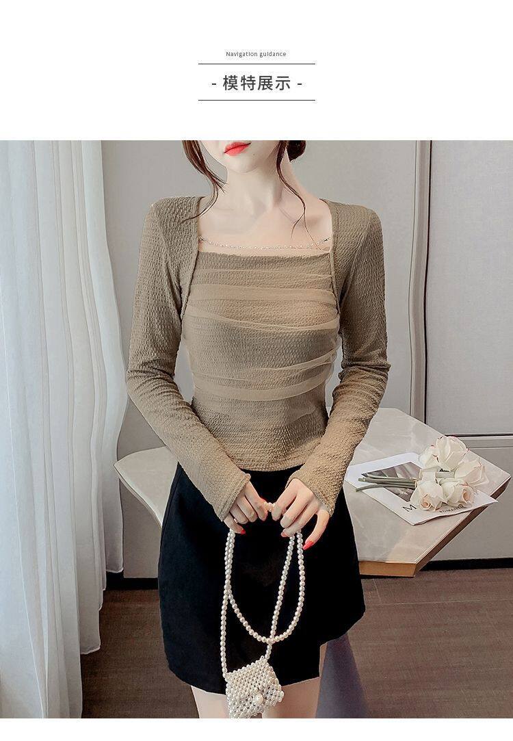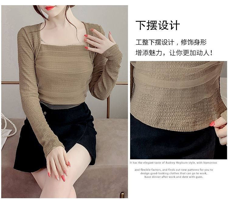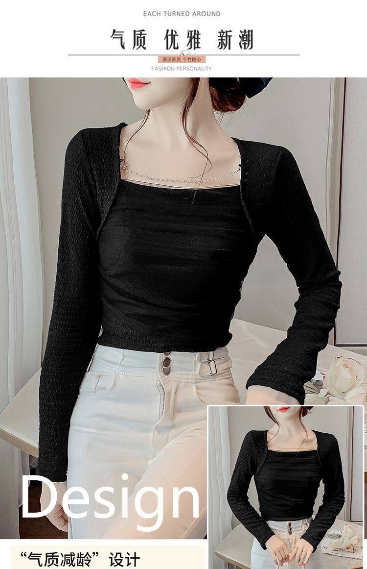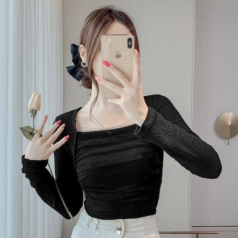 Брендовый короткий лонгслив, квадратный вырез, облегающий крой, французский стиль