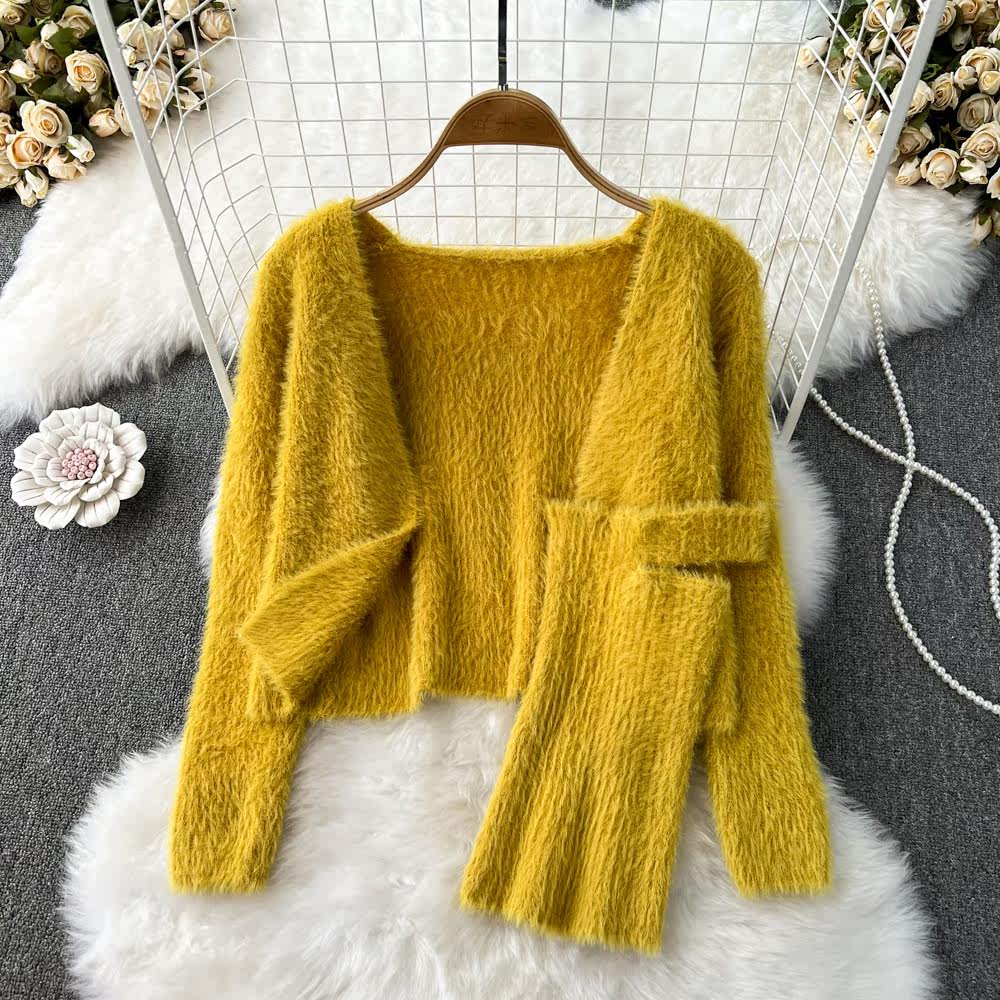 Демисезонный ретро трикотажный кардиган, комплект, топ без лямок, трикотажная майка, топ с чашечками