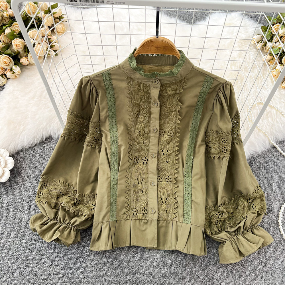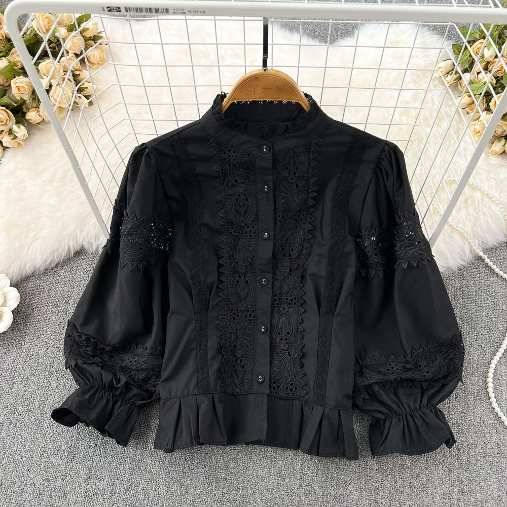 Осенний демисезонный милый кружевной лонгслив, короткая рубашка для отдыха, кружевное платье, в западном стиле