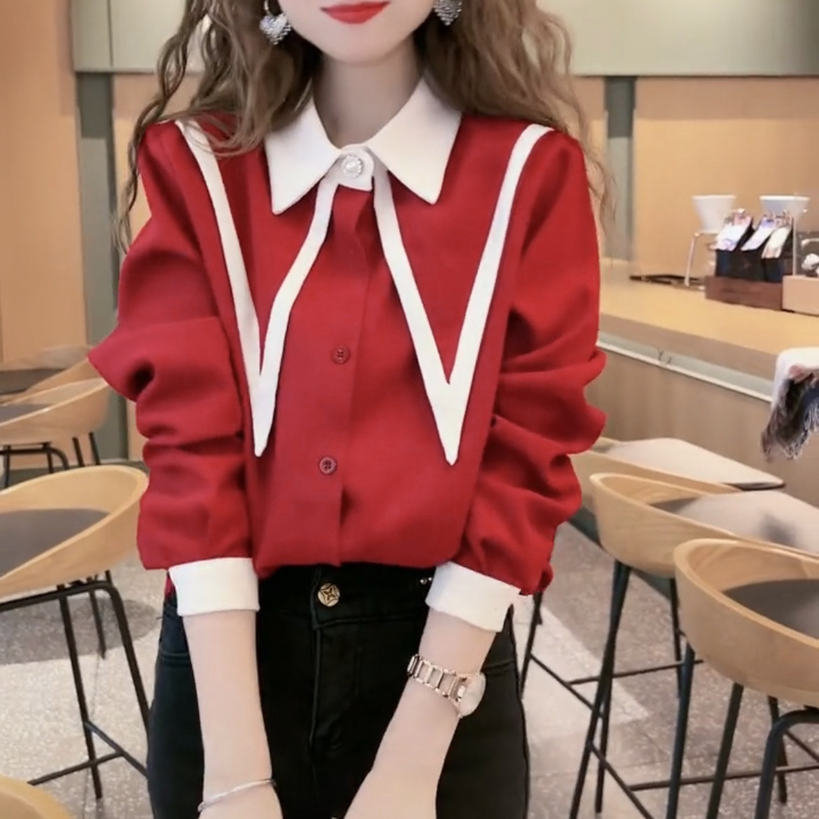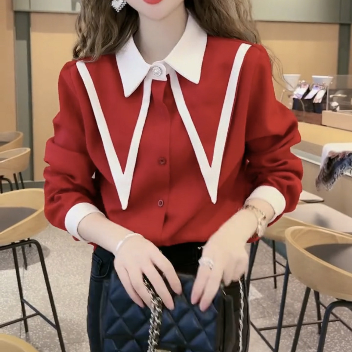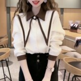 Демисезонная дизайнерская рубашка, воротник поло, 2023 года, в корейском стиле, тренд сезона, в западном стиле