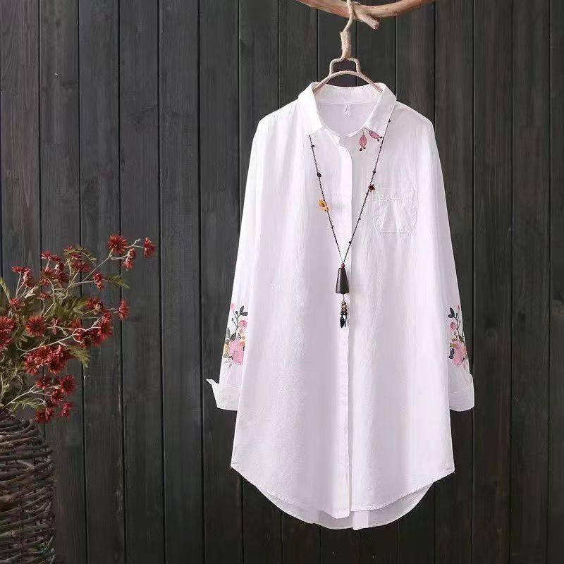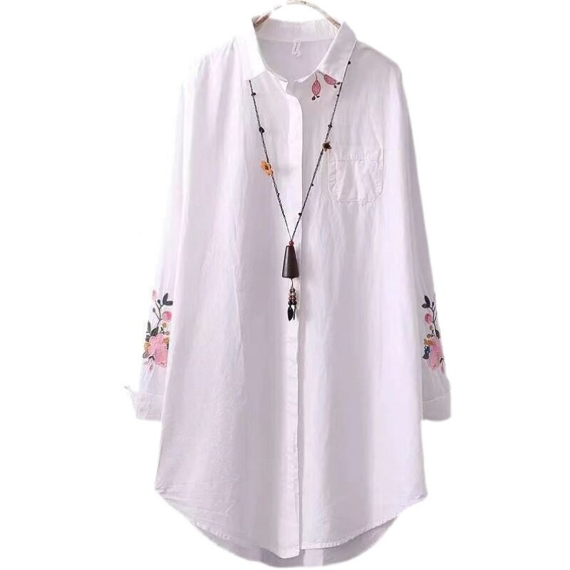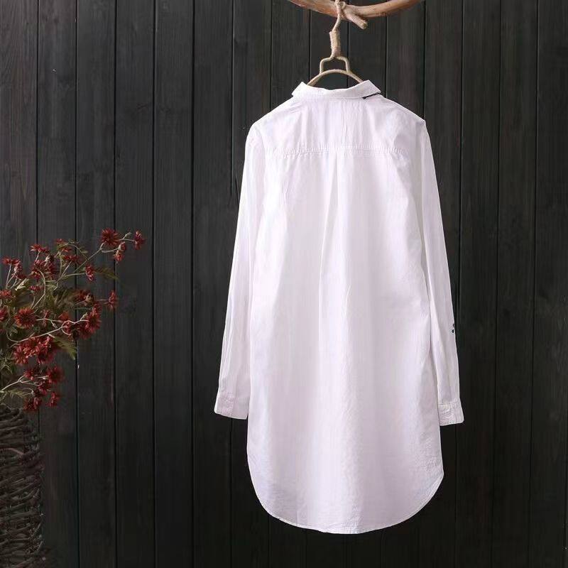 Хлопковая базовая рубашка, длинное приятное телу термобелье, в корейском стиле, большой размер, с вышивкой, средней длины