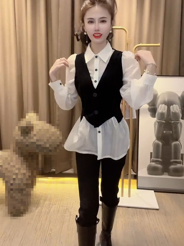 Весенняя зимняя модная дизайнерская рубашка, универсальный базовый приятный телу комплект, 2023, тренд сезона, изысканный стиль