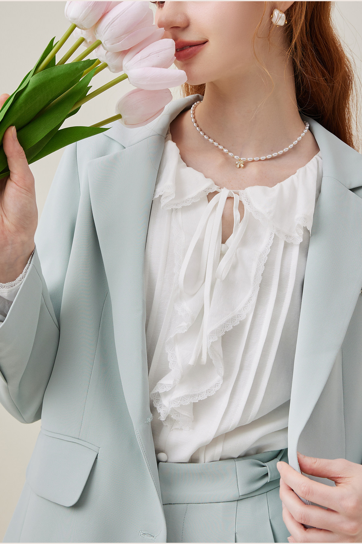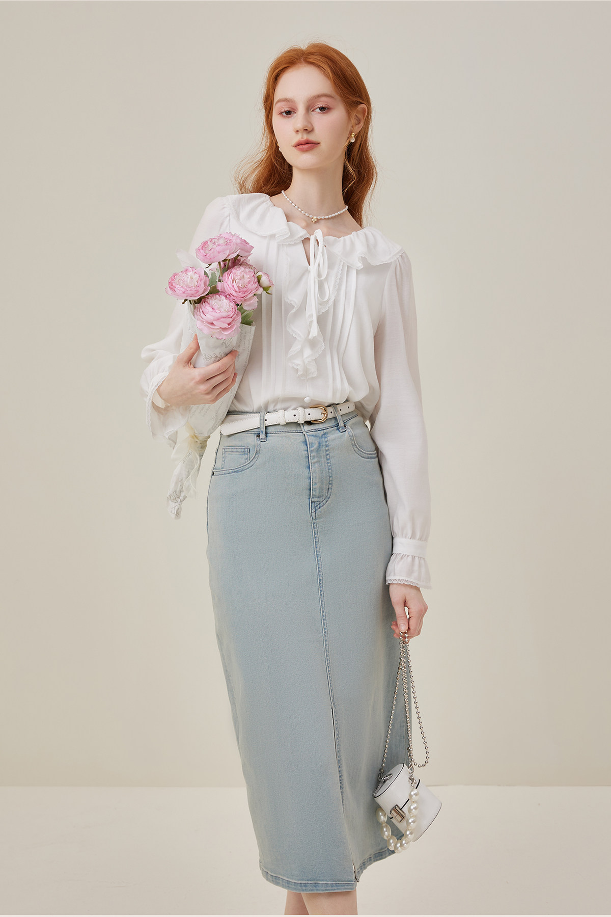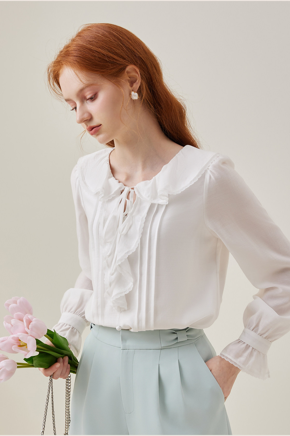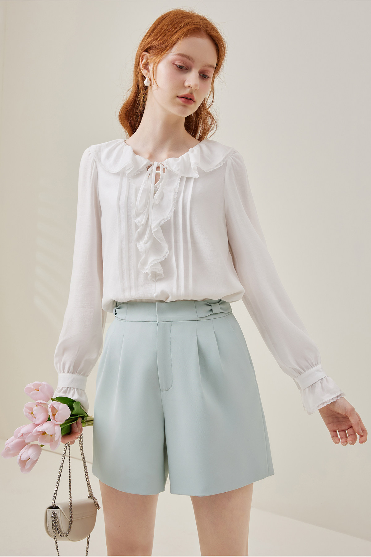 Марлевая весенняя модная брендовая дизайнерская рубашка с бантиком, 2023, тренд сезона