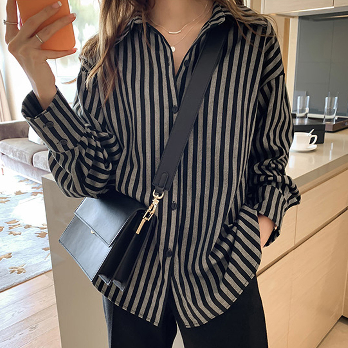 Рубашка, демисезонный ретро базовый дизайнерский лонгслив, свободный крой