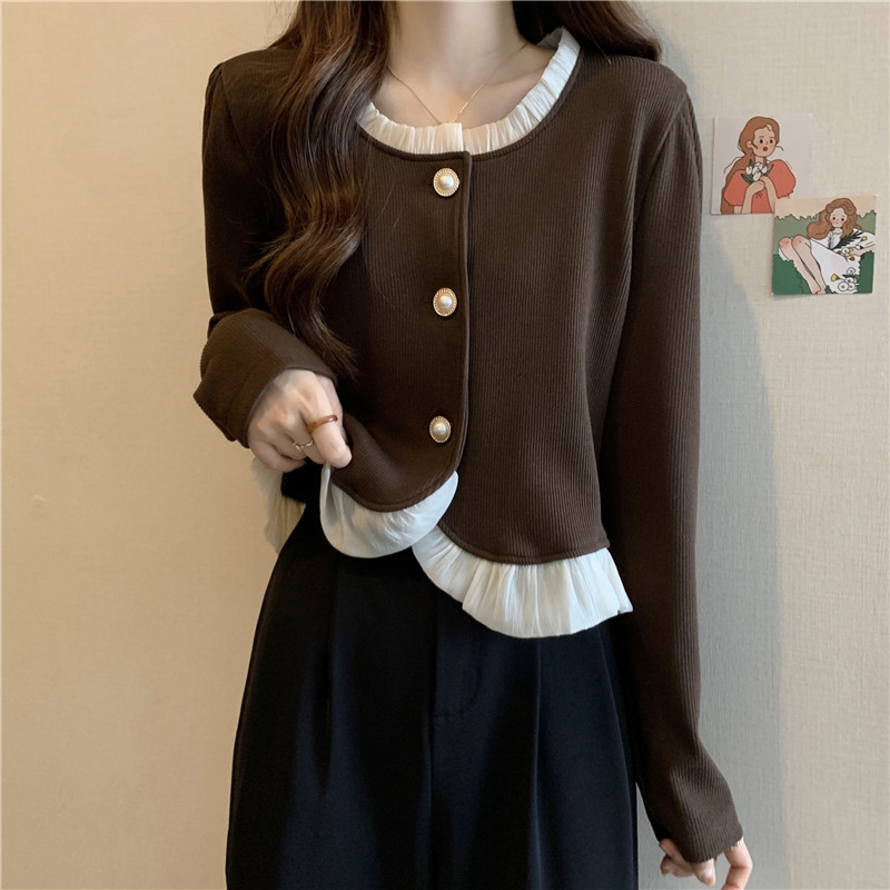 Кружевной базовый приятный телу осенний лонгслив, кардиган, рубашка, большой размер, подходит для полных девушек