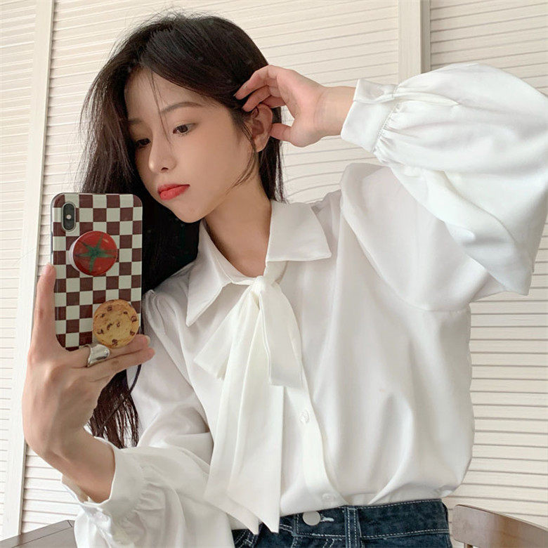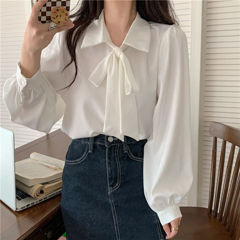 Осенняя рубашка с бантиком, базовый лонгслив, большой размер, свободный крой, французский стиль