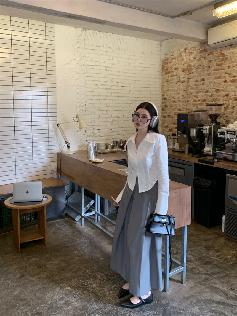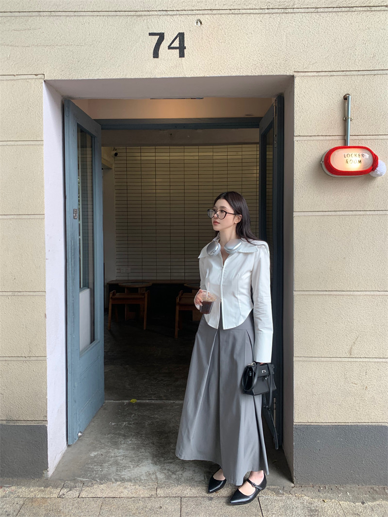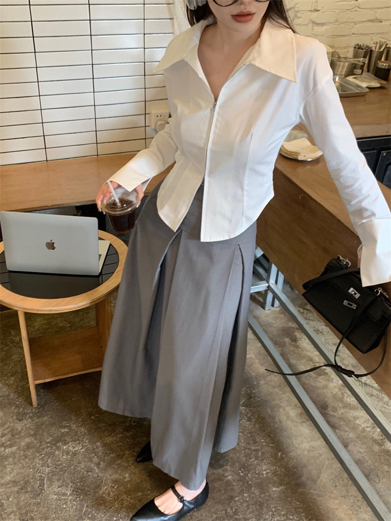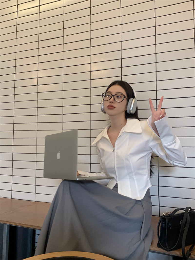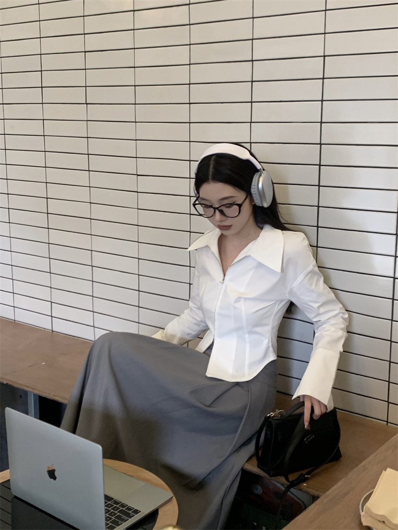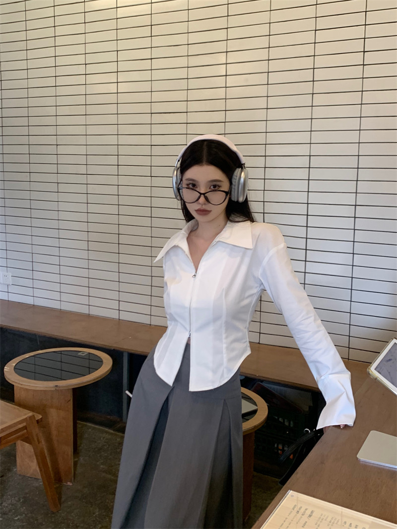 Белая весенняя короткая дизайнерская базовая рубашка с молнией, французский стиль, тренд сезона