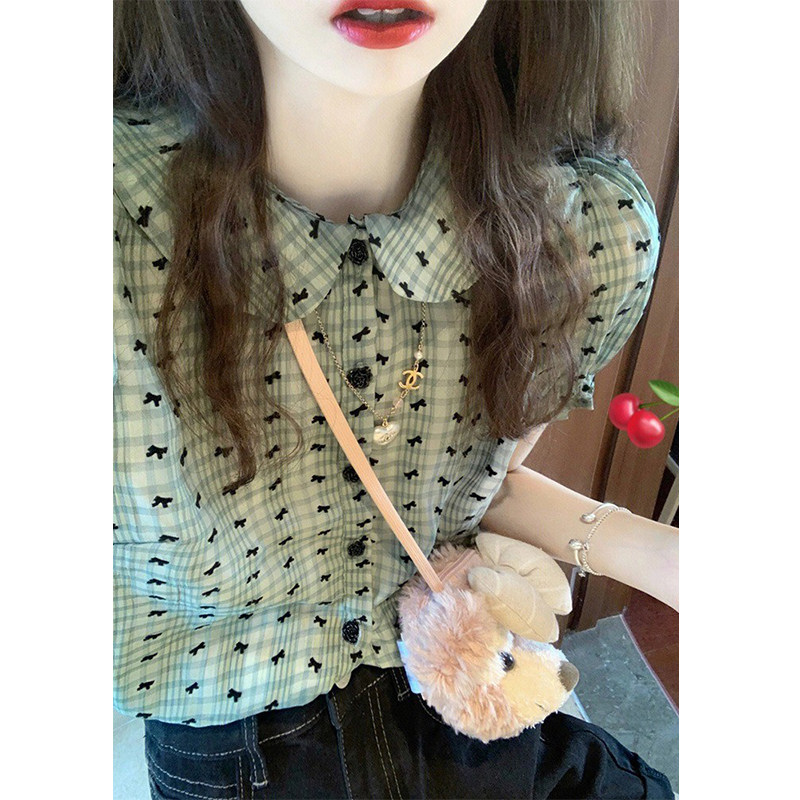 Кукла, футболка, летняя небольшая рубашка, французский стиль, кукольный воротник, рукава фонарики, цветочный принт