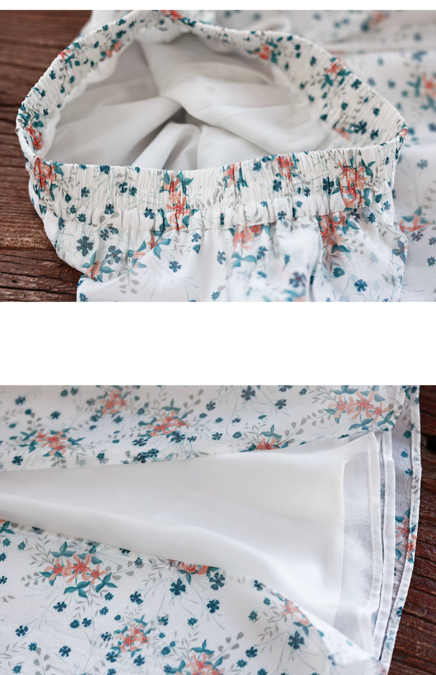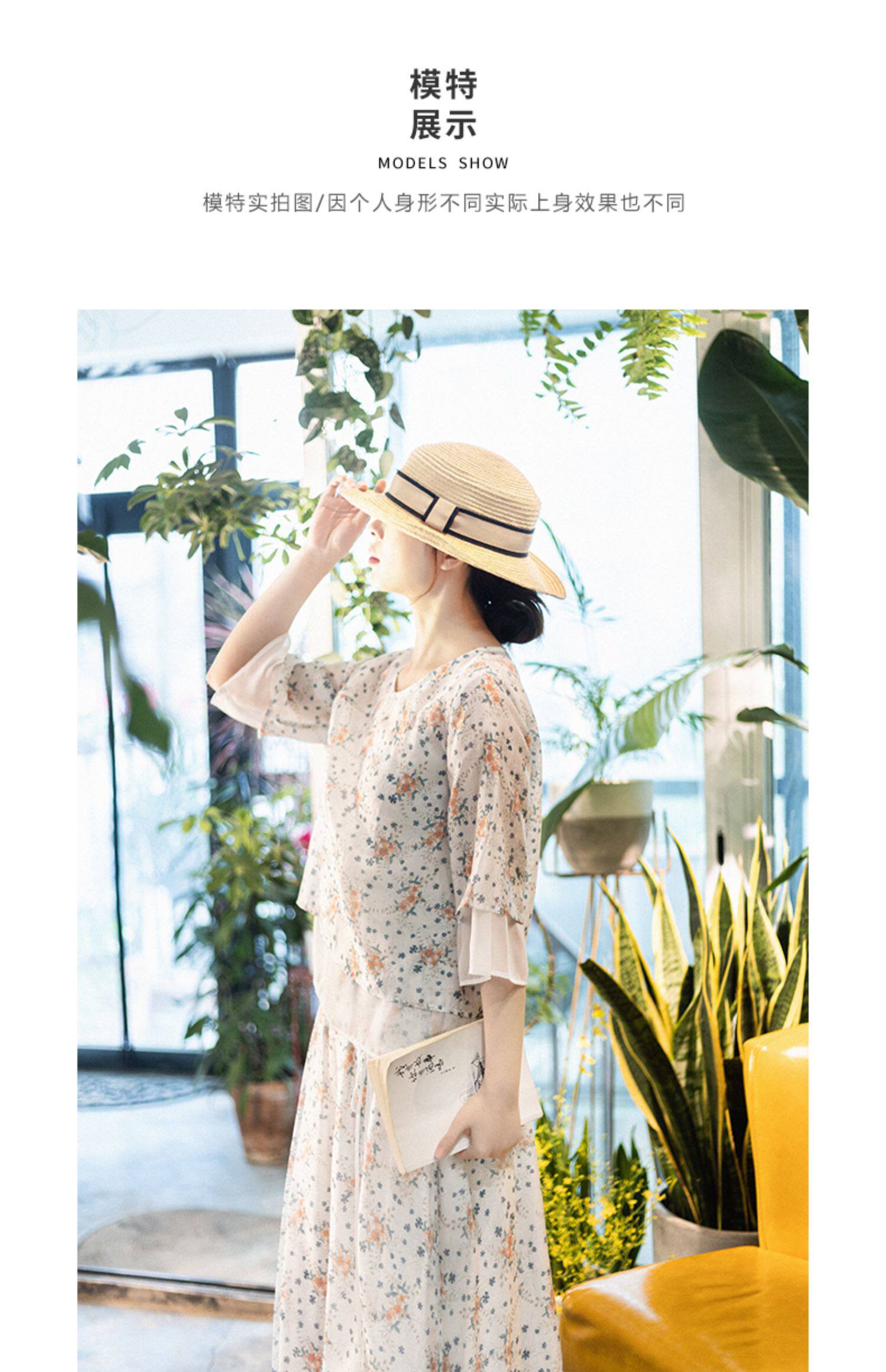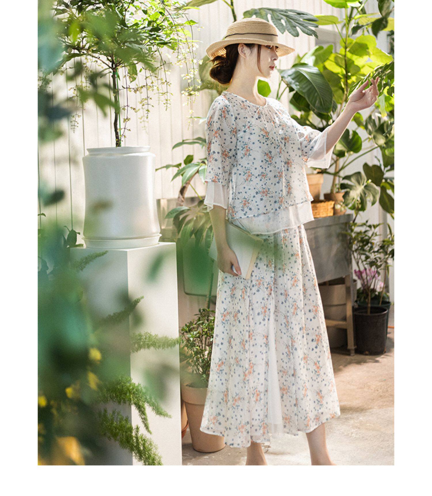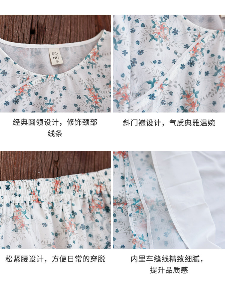 Готовый запас [Туманная Цветочная Комната] Топ с имитацией тенселя для женщин, летний новый костюм с юбкой А-силуэта с круглым вырезом и косой планкой