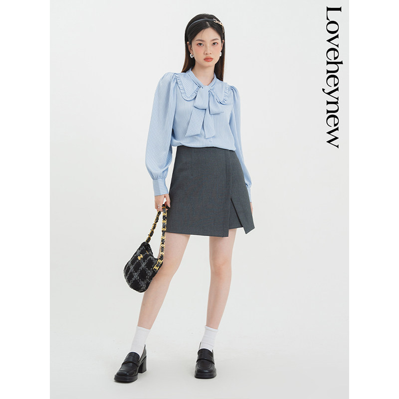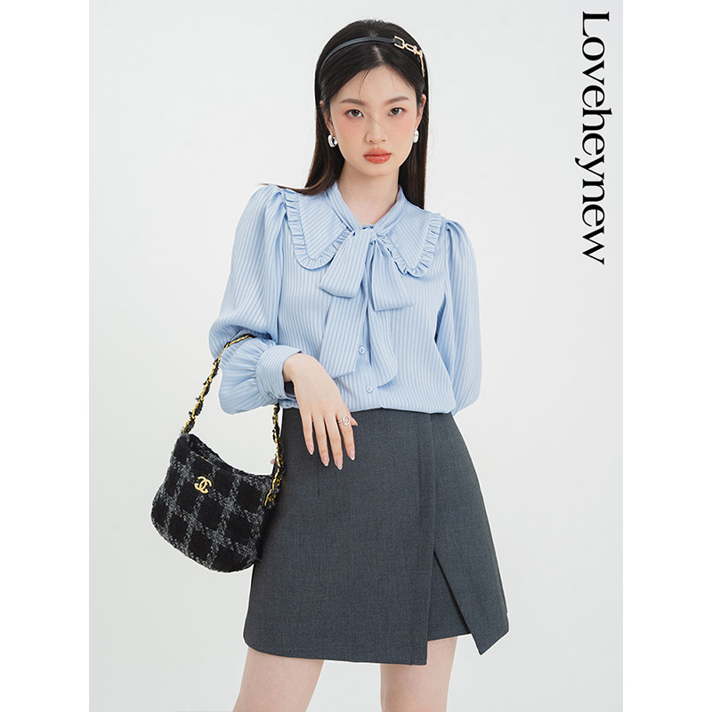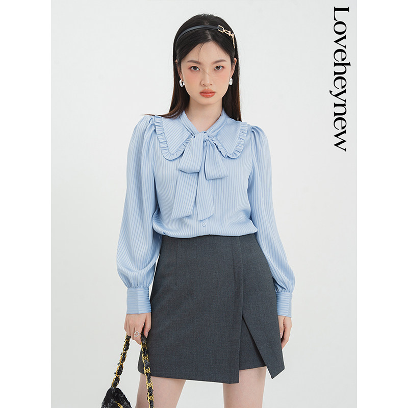 Ремень с бантиком, весенняя милая рубашка, коллекция 2023, французский стиль