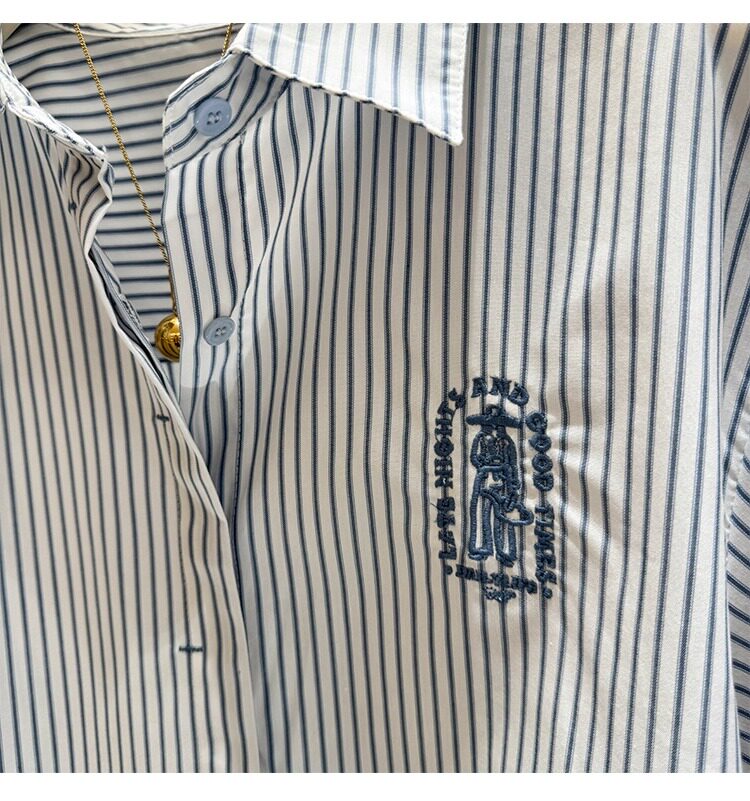 Синяя летняя дизайнерская рубашка для отдыха, французский стиль, тренд сезона, оверсайз