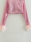 Kaslead New Women's European и American Style Mounts Feathers Pink Seeder
