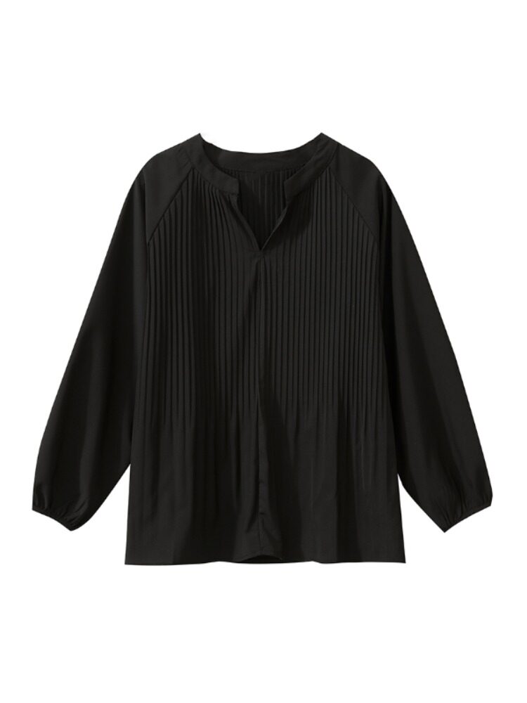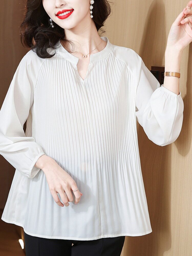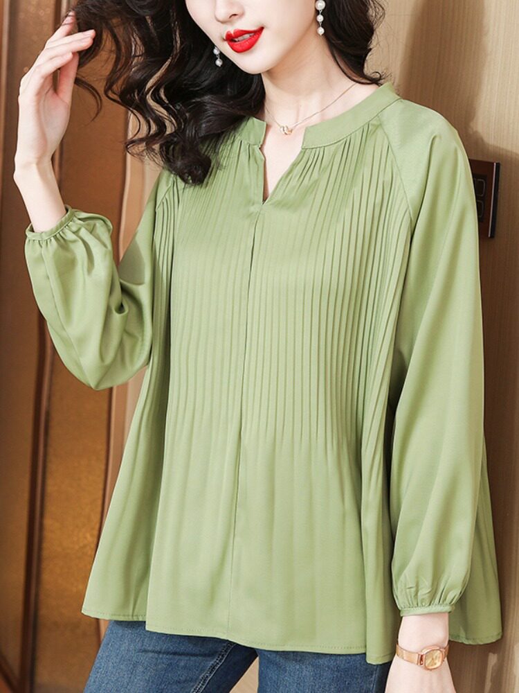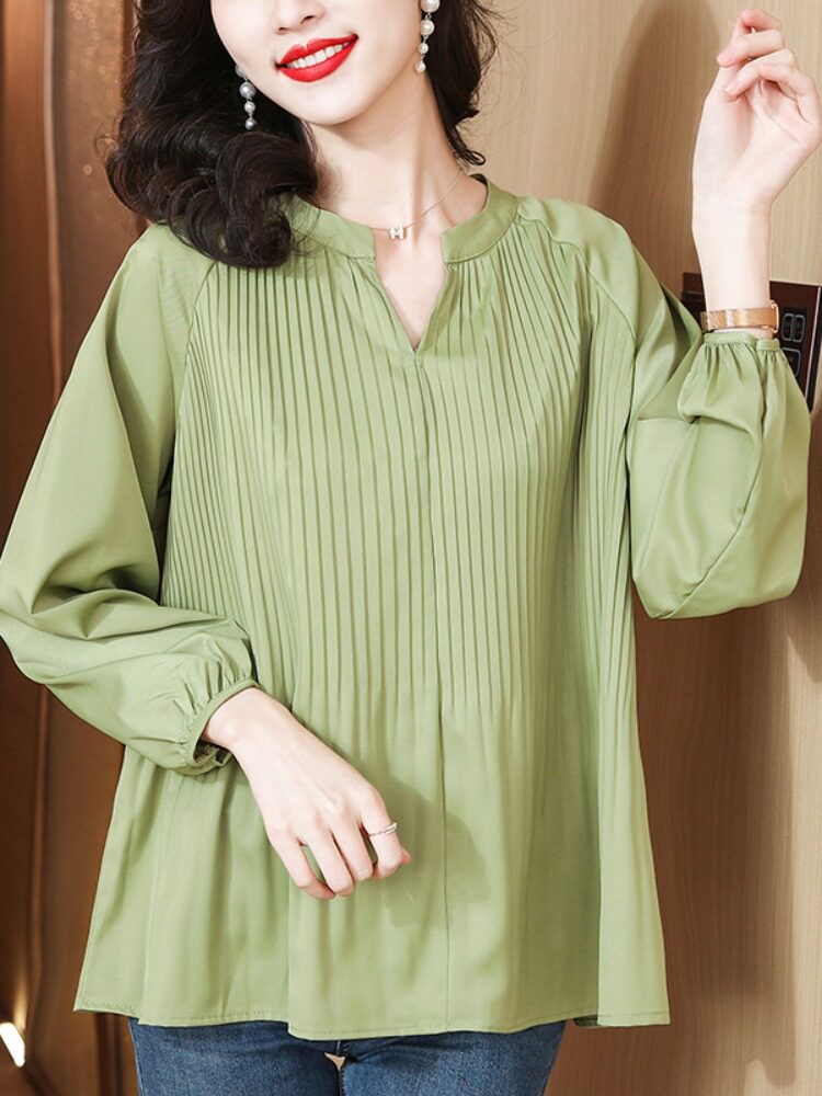 Демисезонный шифоновый лонгслив, большой размер, коллекция 2023, V-образный вырез