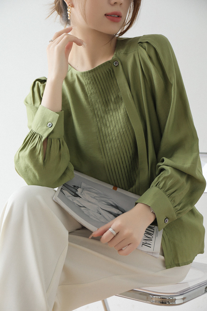 ~ [Корейская единственная шелковая рубашка] Французская элегантная легкая рубашка Tucker Fold 2023 Spring AY3045