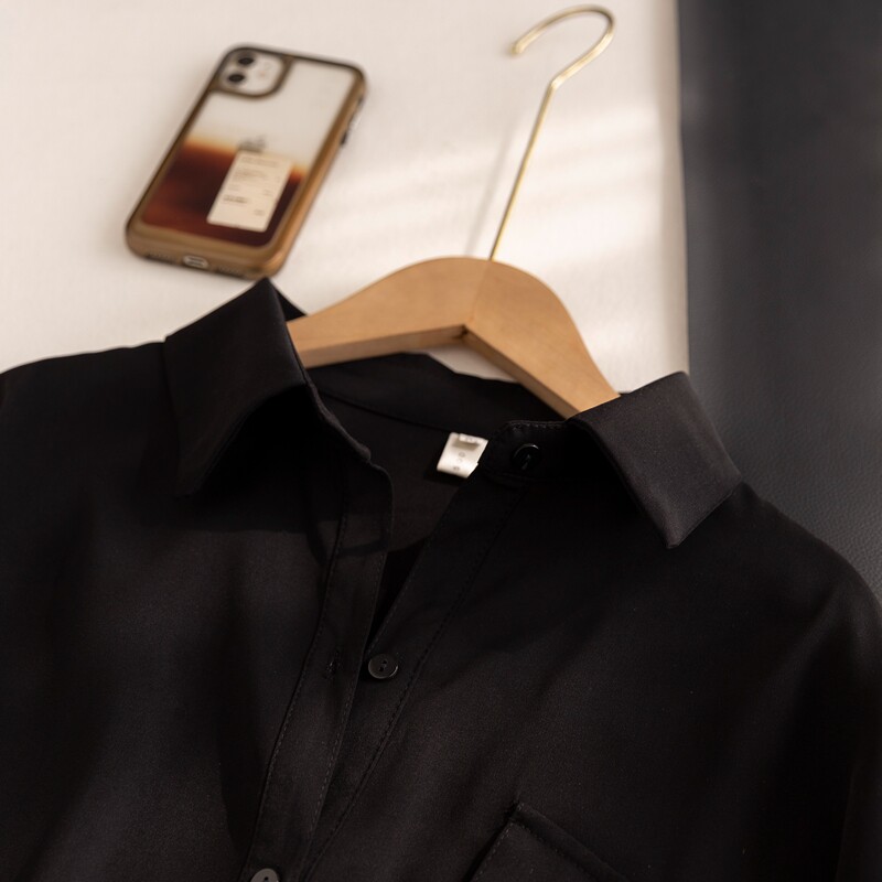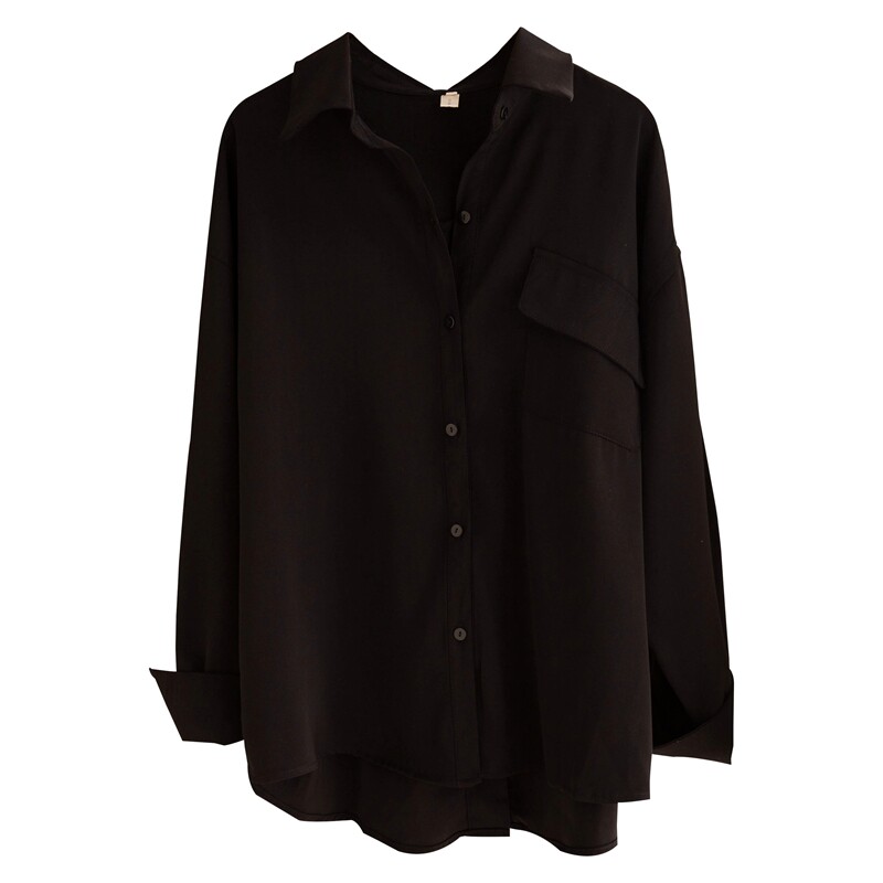 (Трансграничная торговля), элитная черная рубашка, базовый приятный телу лонгслив, оверсайз