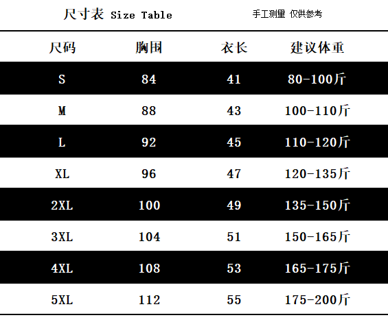 | Размер: | S код [80-100 Catties], M код [100-110 Catties], L код [110-120 Catties], XL-код [120-135 Catties], Код 2xl [135-150 Catties], Код 3XL [150-165 Catties], Код 4xl [165-175 Catties], Код 5xl [175-200 Catties] |