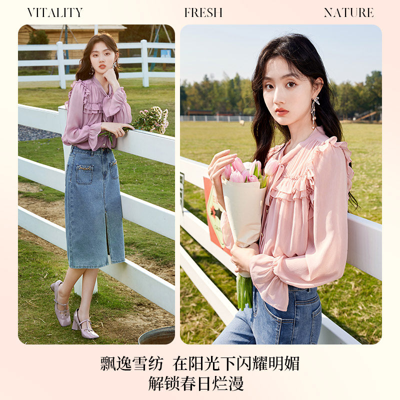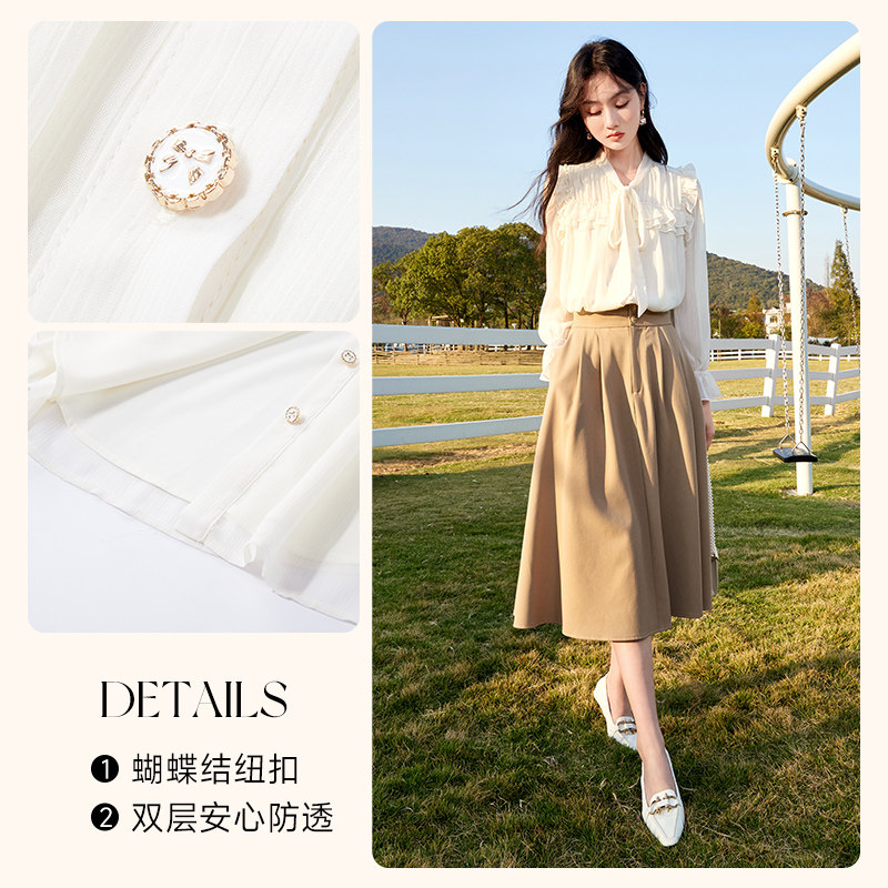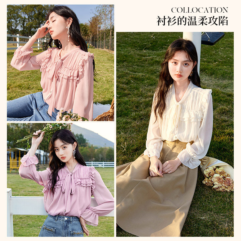 香影 Осенняя рубашка, шифоновый мегафон с бантиком, 2023 года
