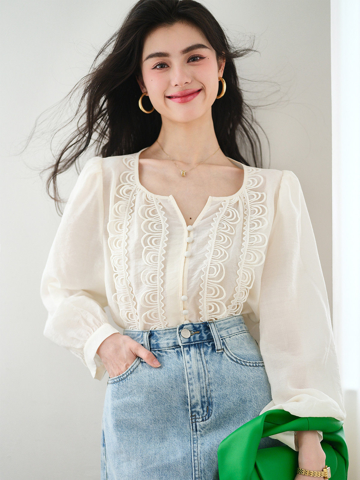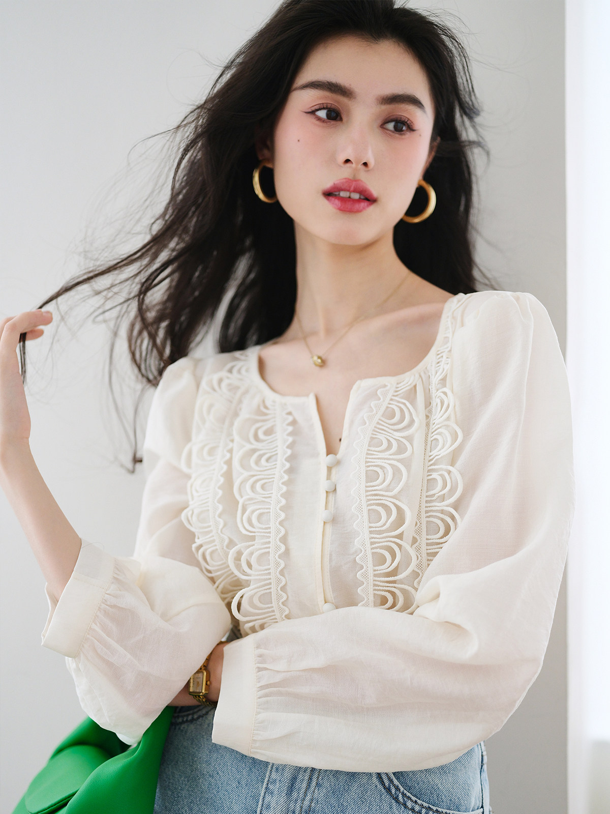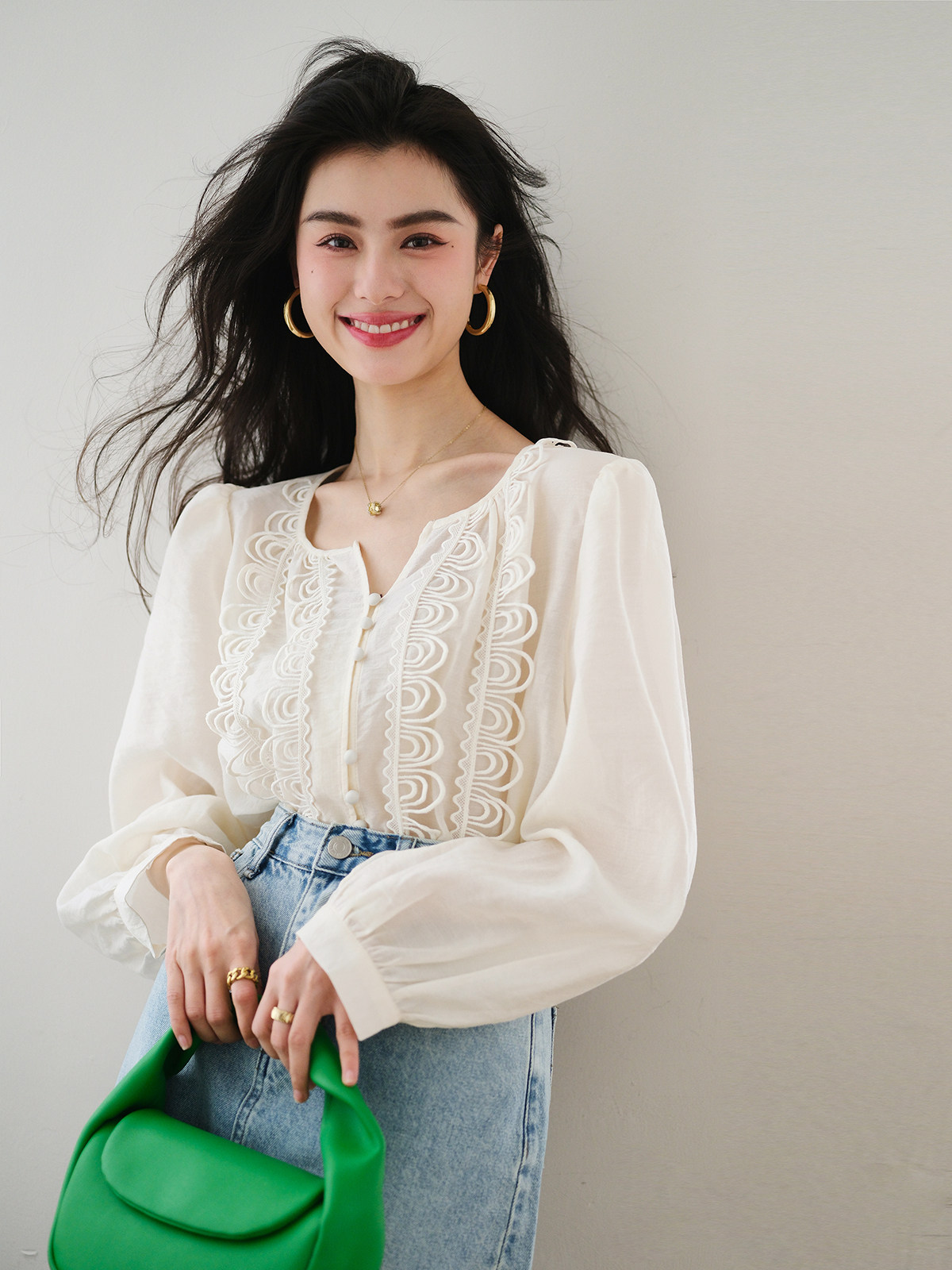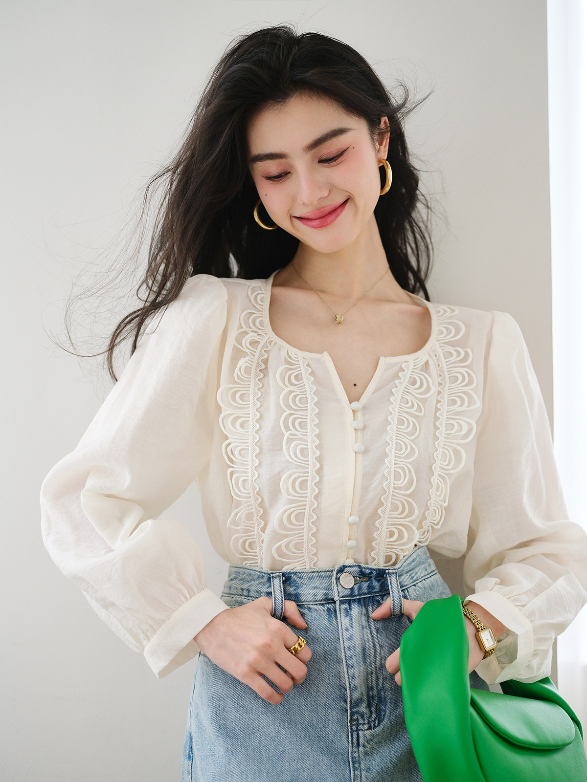 Кружевной шифоновый фонарь, весенняя дизайнерская модная рубашка, французский стиль, 2023, тренд сезона