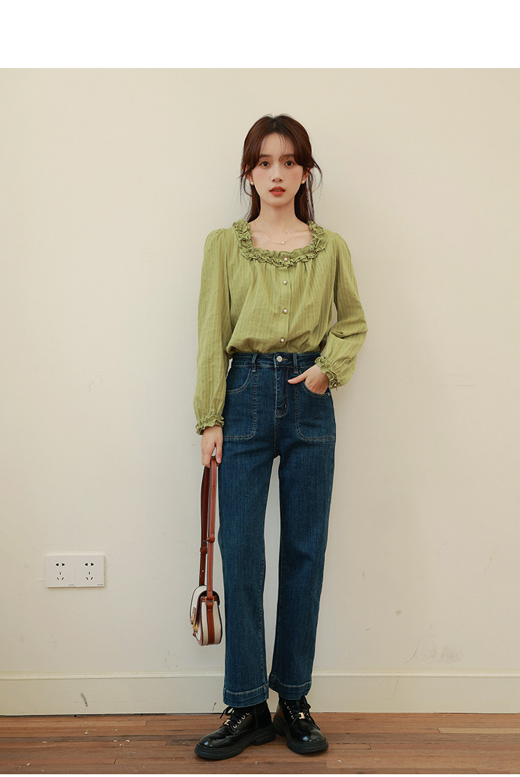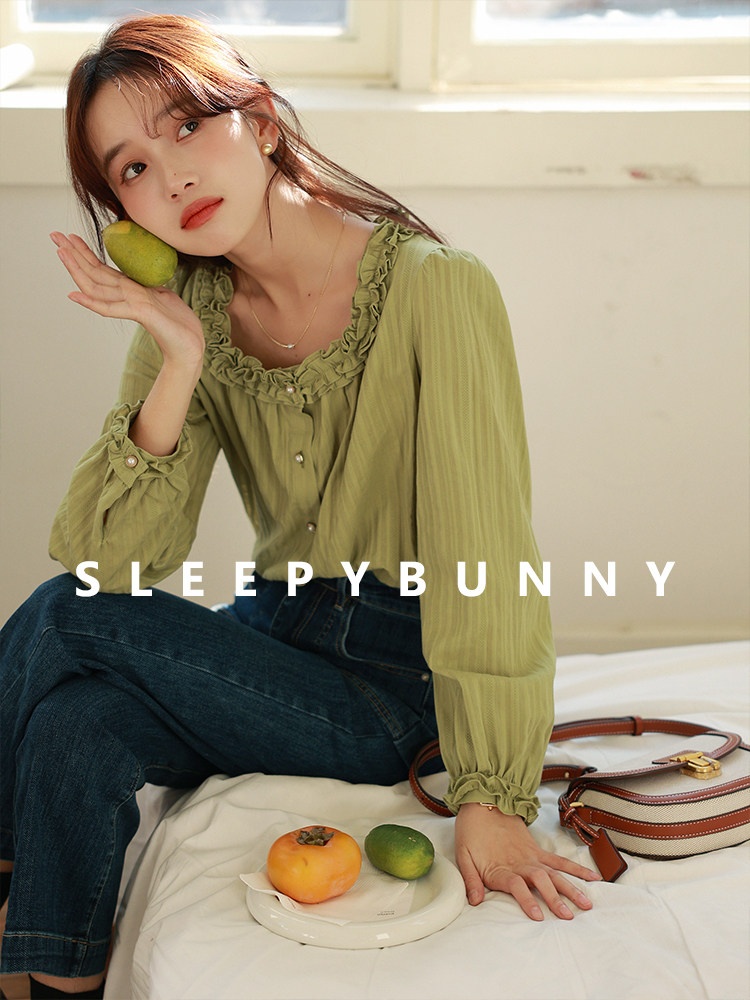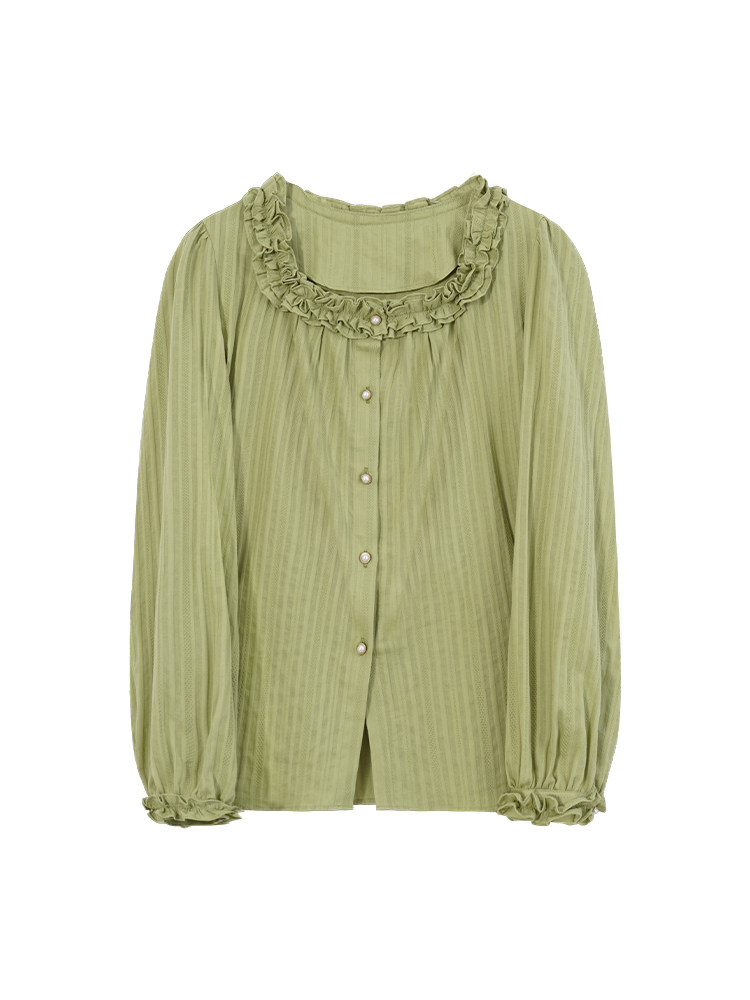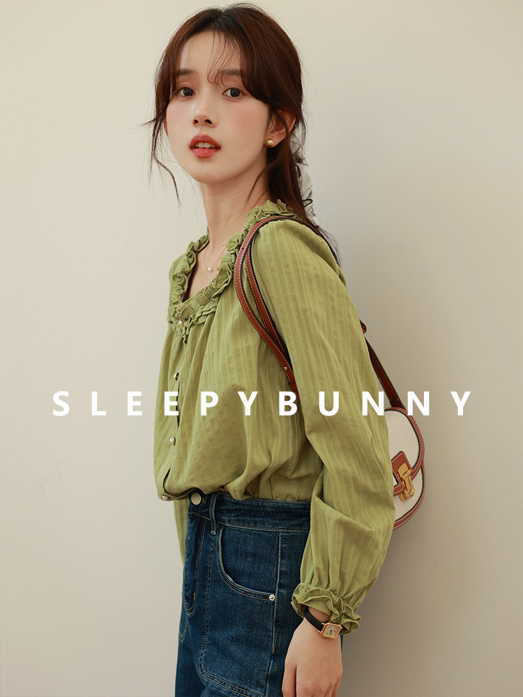 Весенняя зеленая ретро милая рубашка, фонарь, оверсайз, квадратный вырез