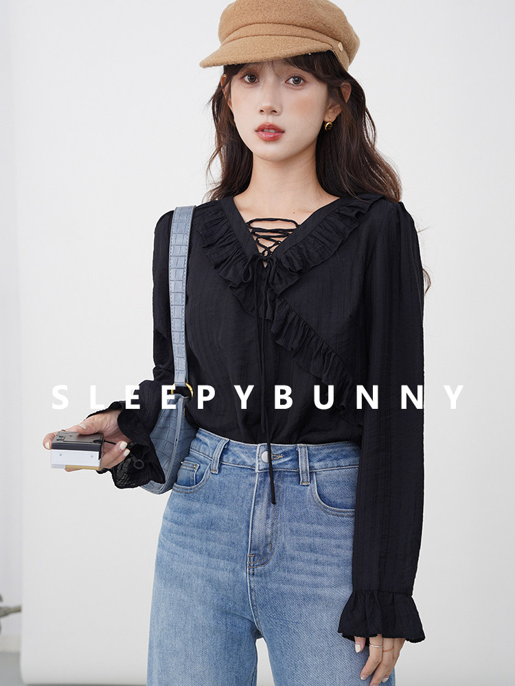 Черный классический ремень, легкая и тонкая элегантная ретро рубашка, V-образный вырез