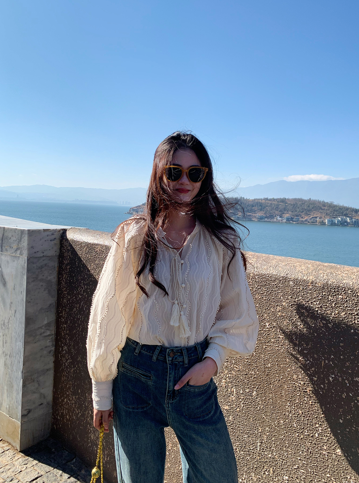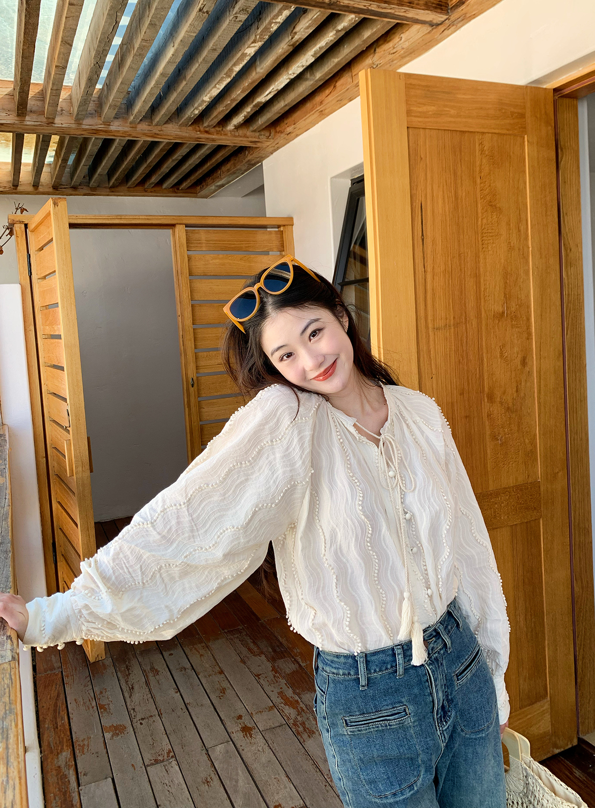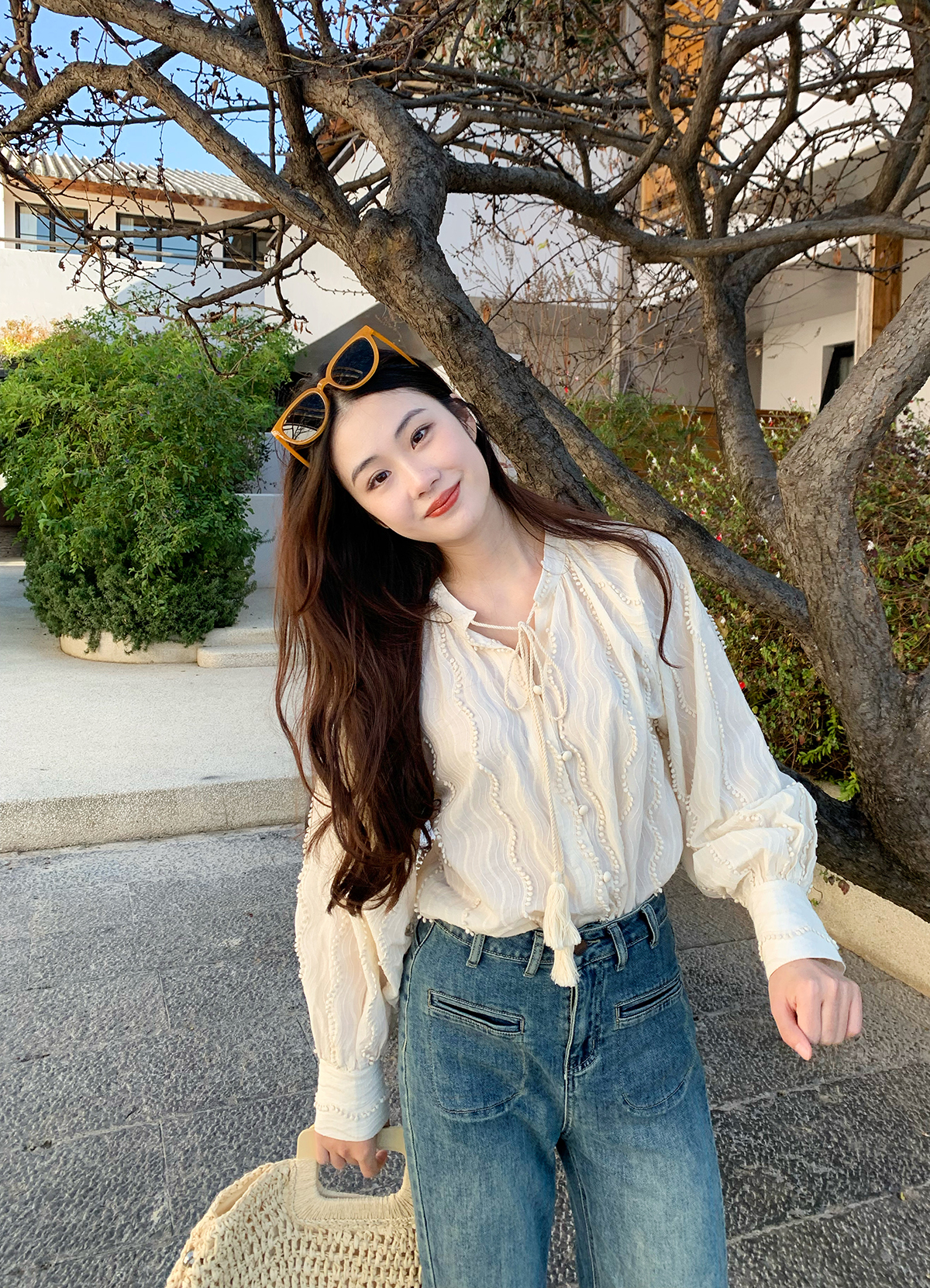 Небольшая дизайнерская белая весенняя рубашка, тренд сезона, коллекция 2023, в корейском стиле, защита от солнца