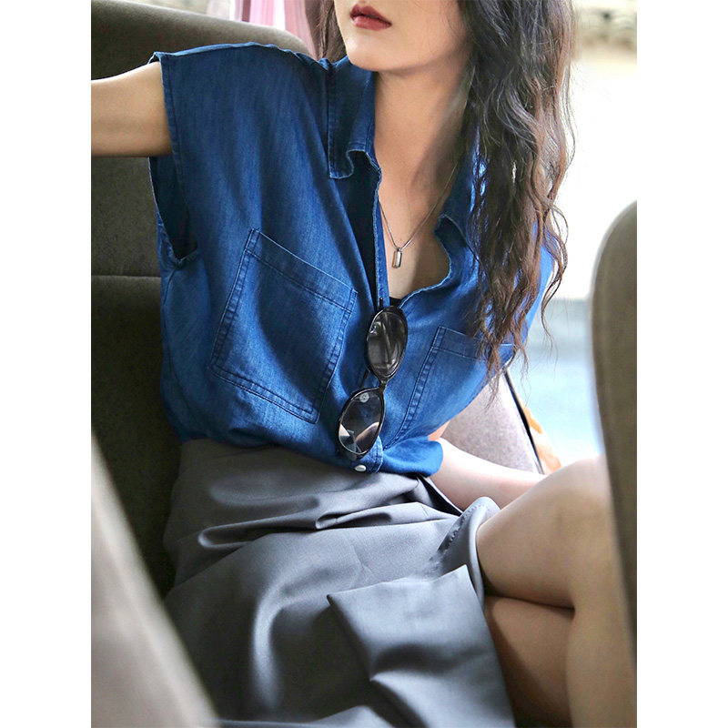 Ретро жилет, летняя одежда, рубашка без рукавов, воротник поло, свободный крой