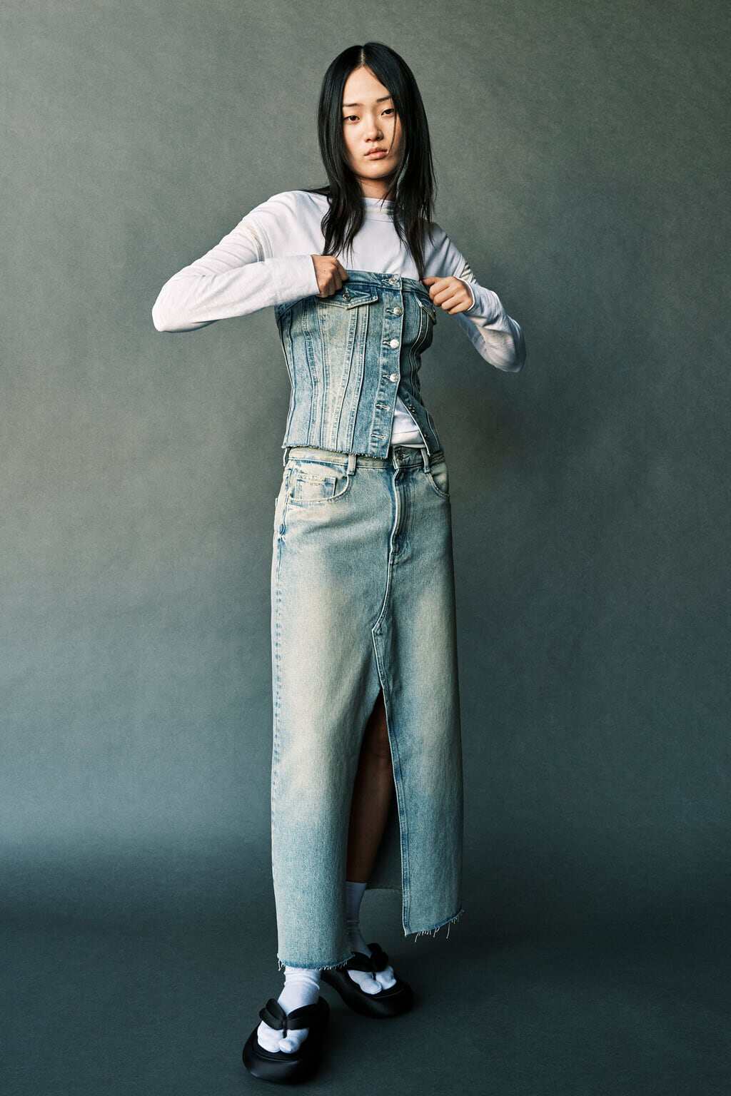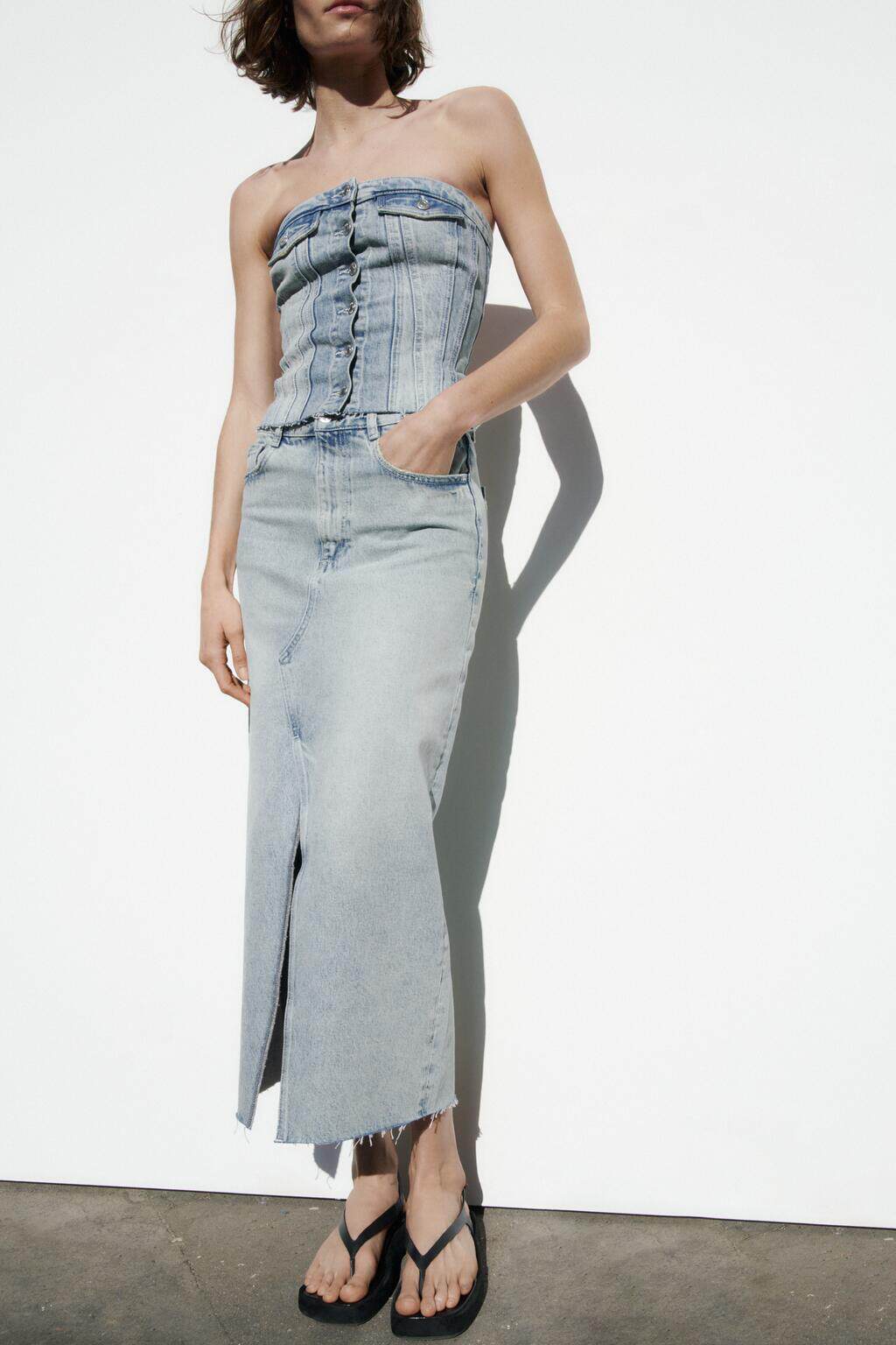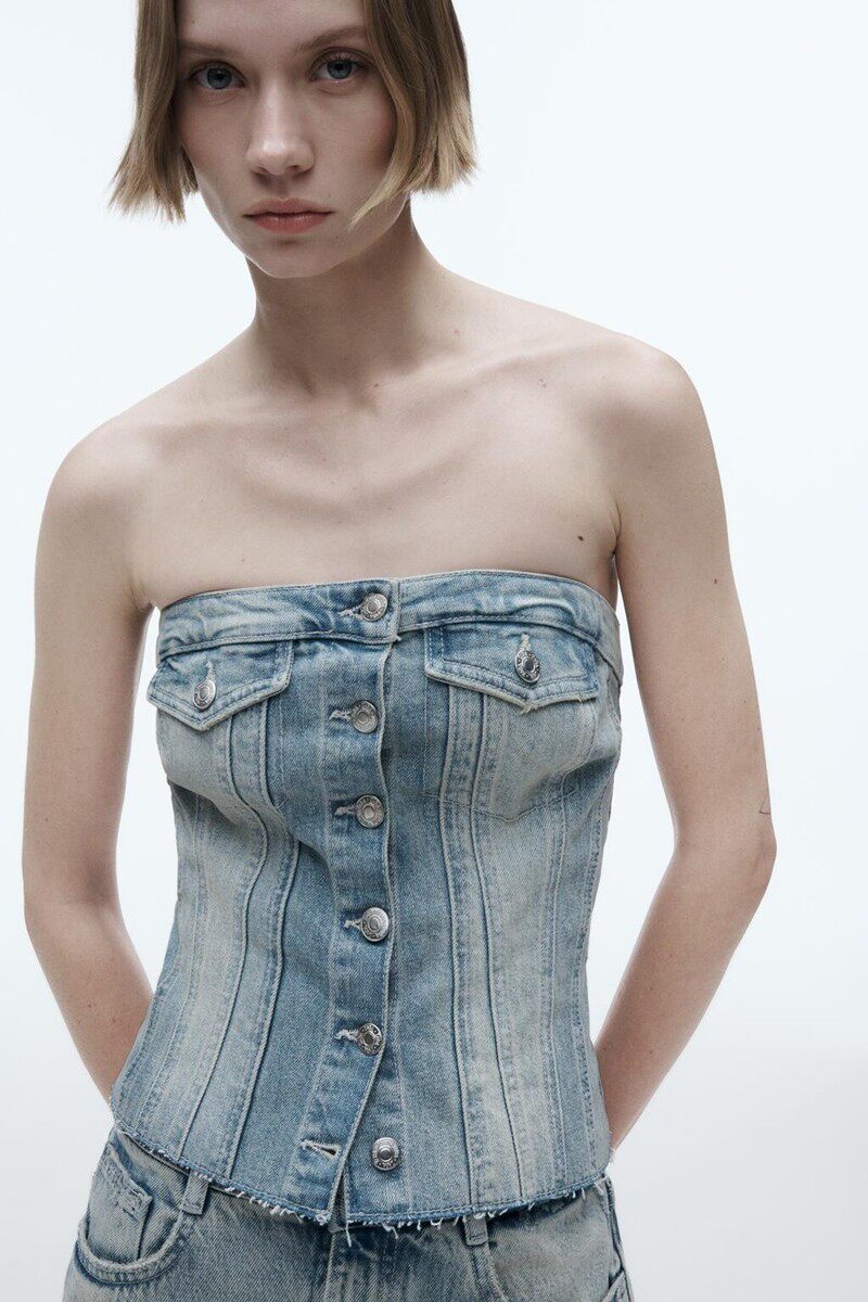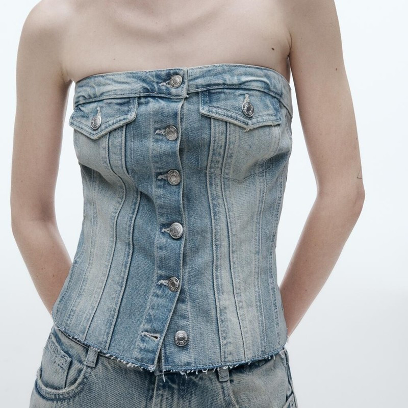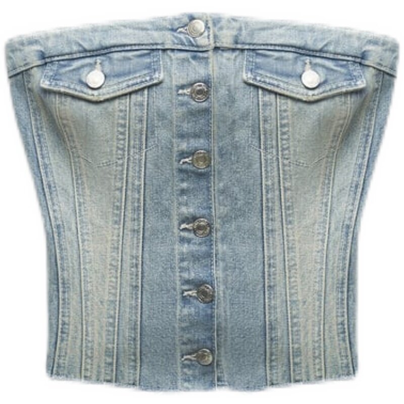 Ретро сексуальный бюстгальтер-топ без рукавов, джинсовая юбка
