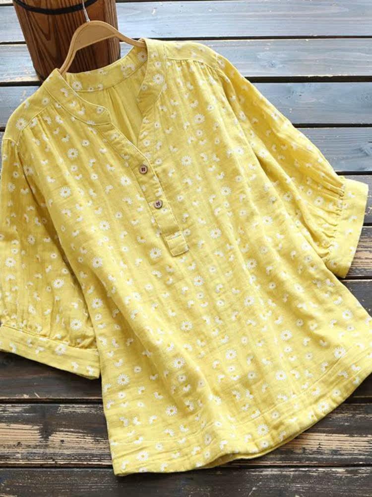 Брендовая рубашка, из хлопка и льна, V-образный вырез