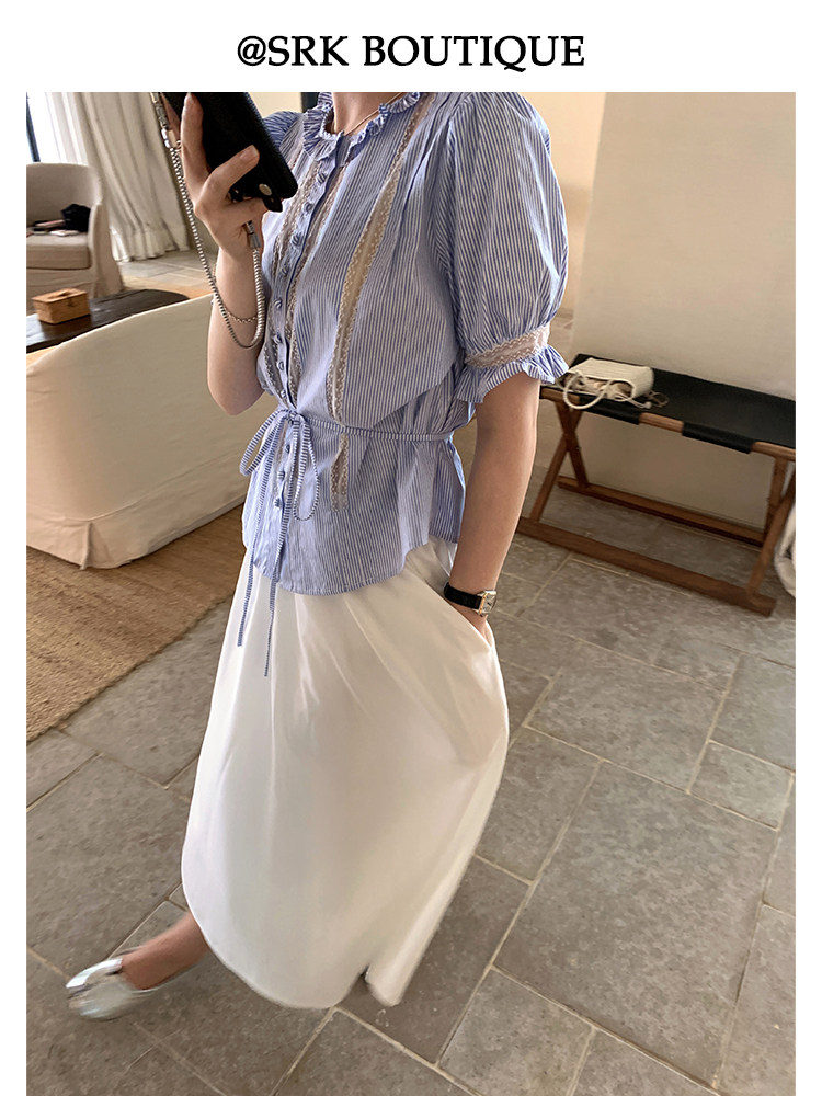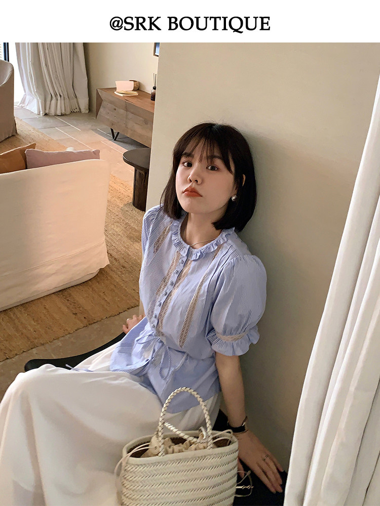 SRK Синяя летняя рубашка, приталенный корсет, французский стиль