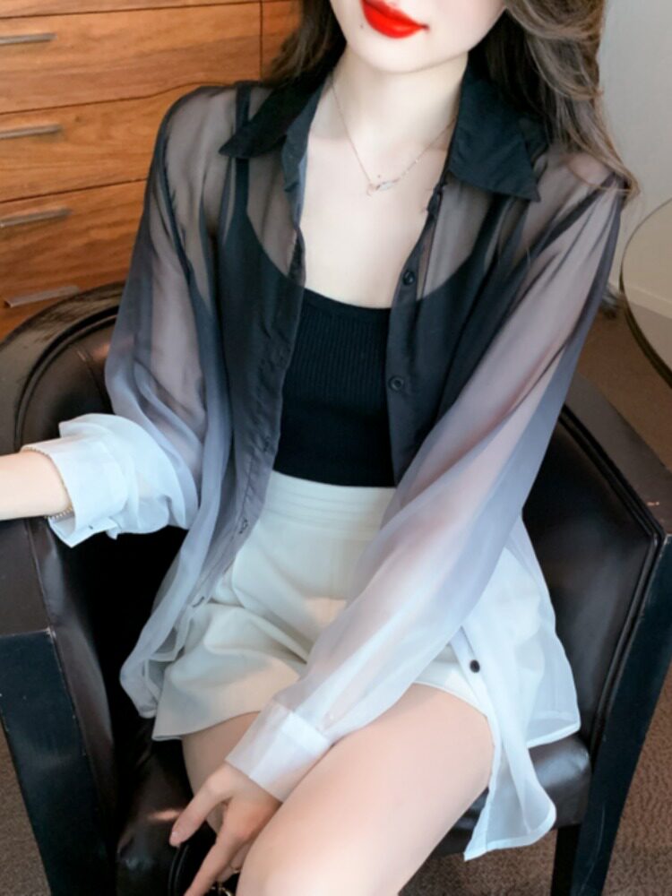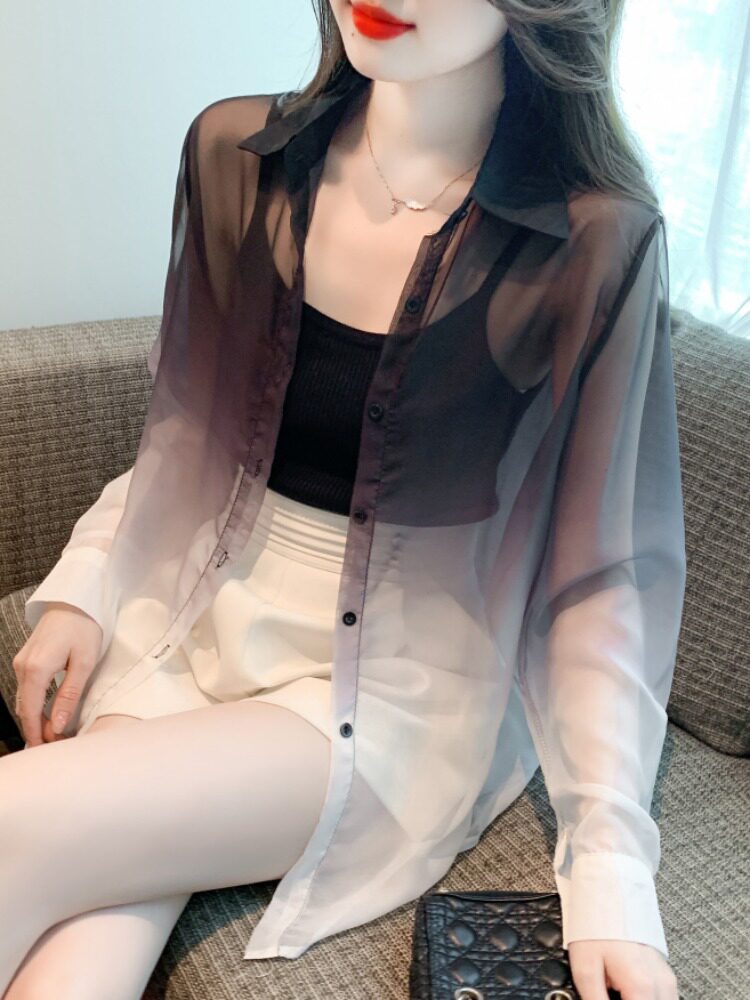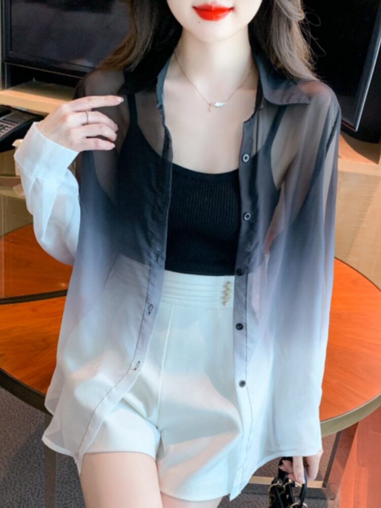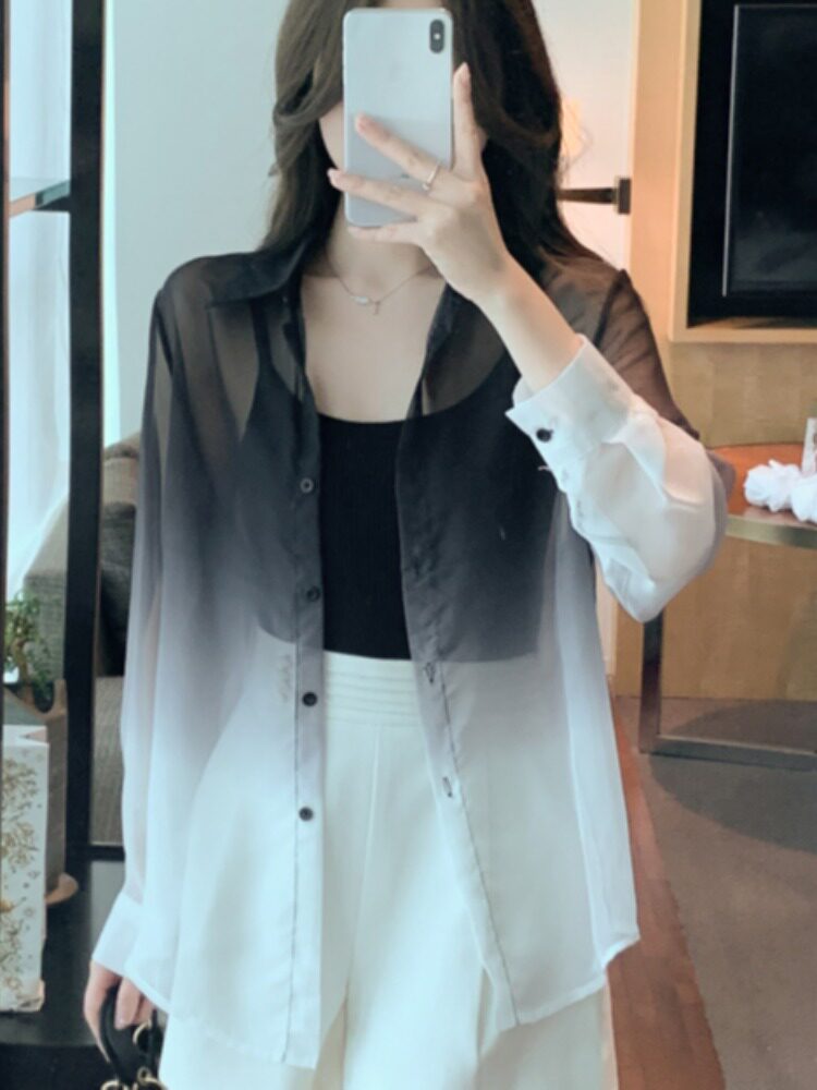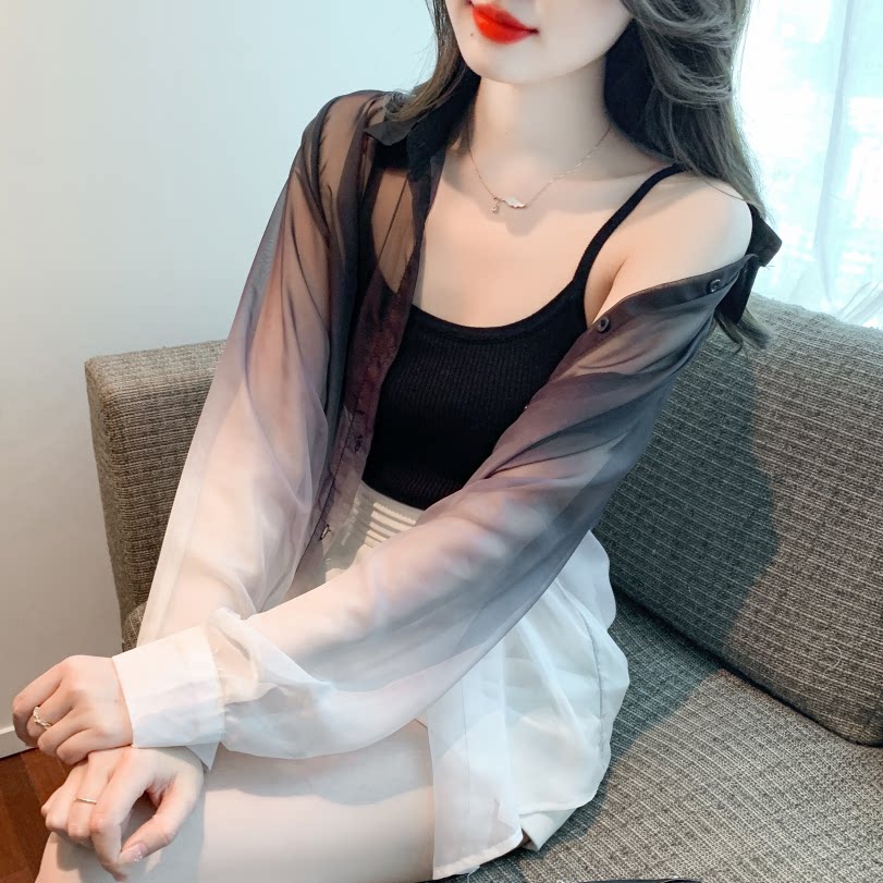 Одежда для защиты от солнца, летняя рубашка, кардиган, в корейском стиле, градиент, защита от ультрафиолета