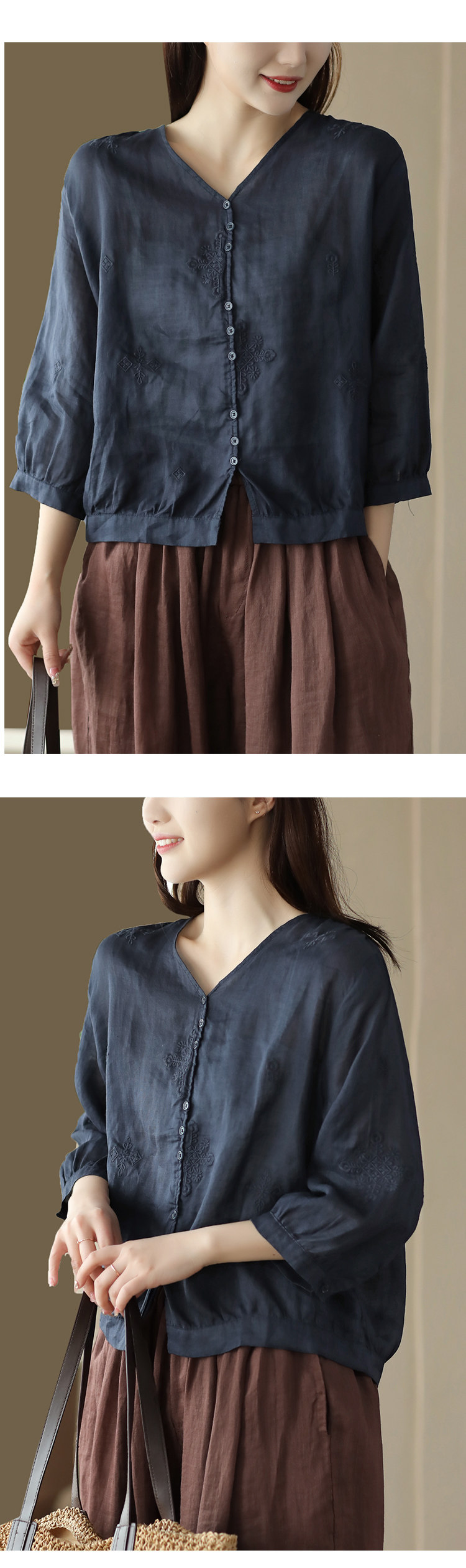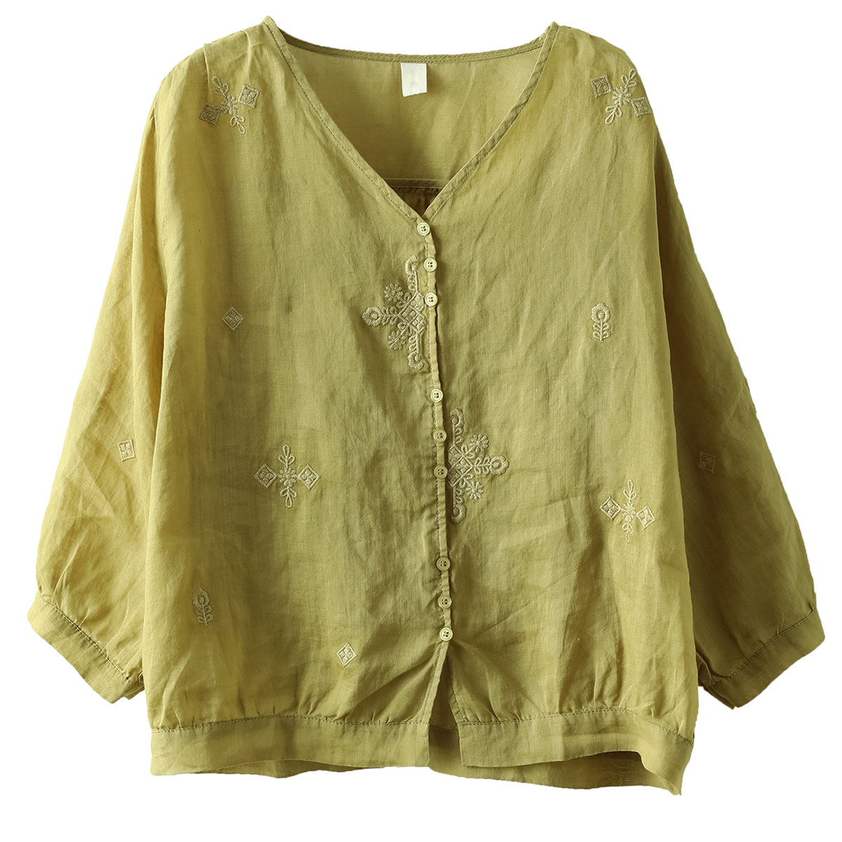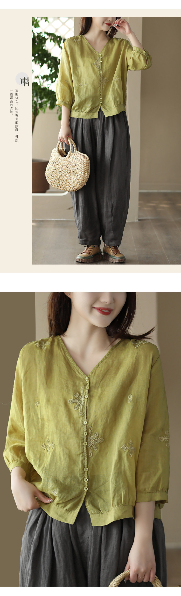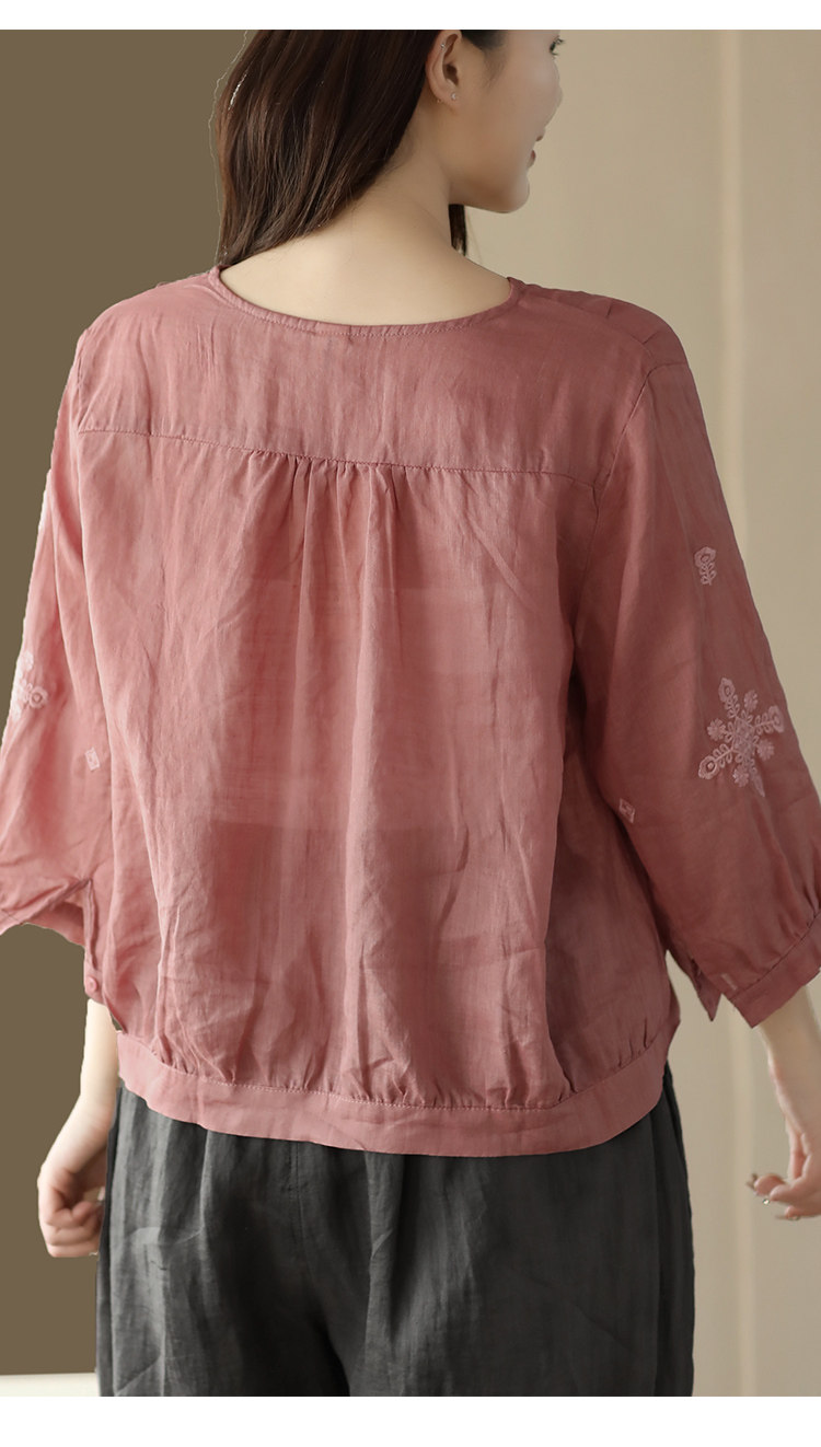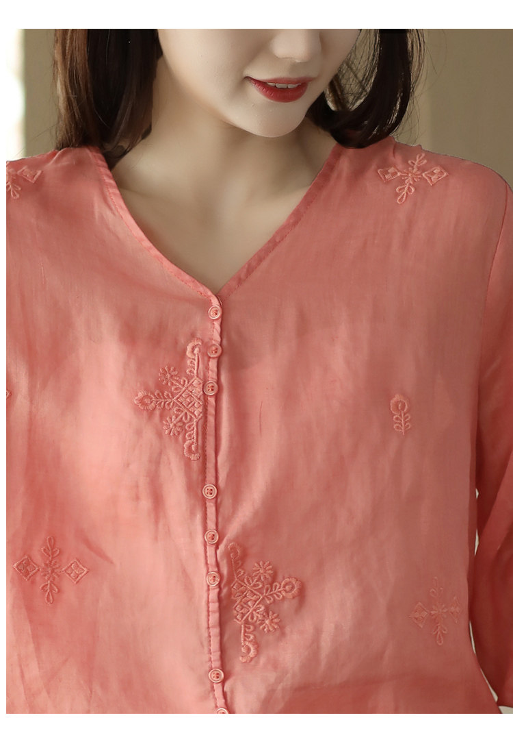 Yuanyuan Meiyi Новая тяжелая промышленная вышиваемая рубашка 100% рубашка Ramie V-образное выстрел Тонкий верхний лето