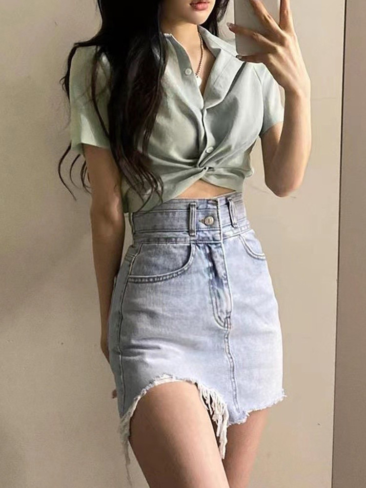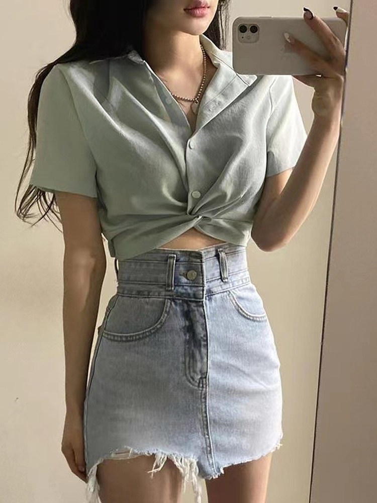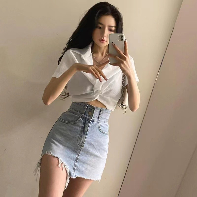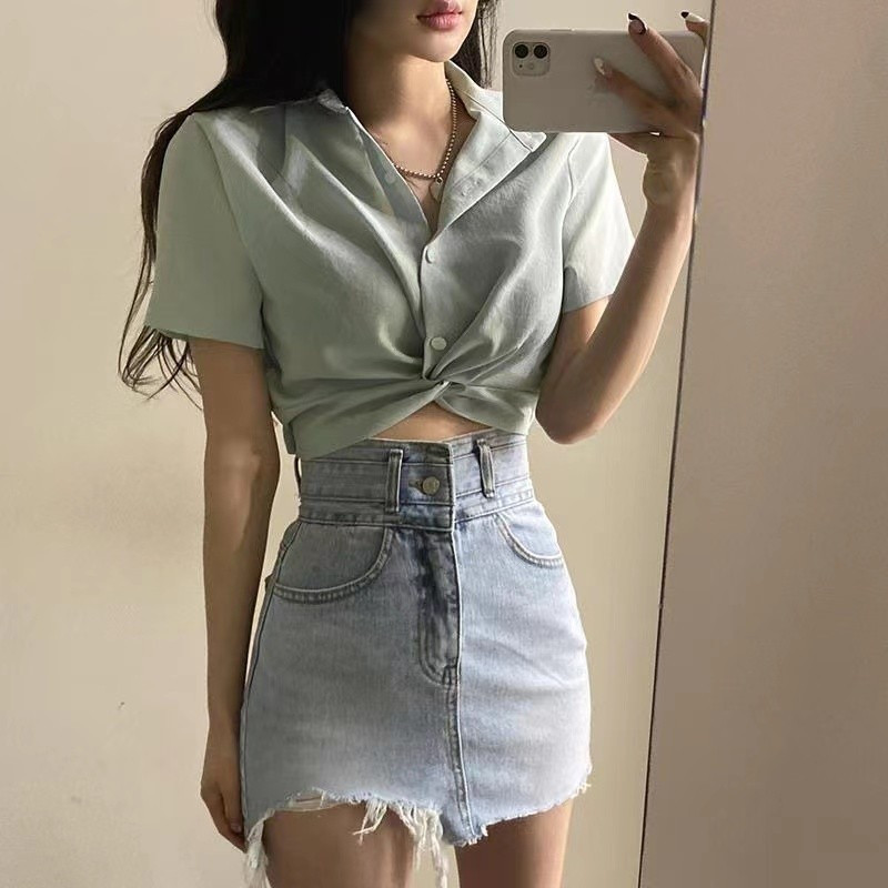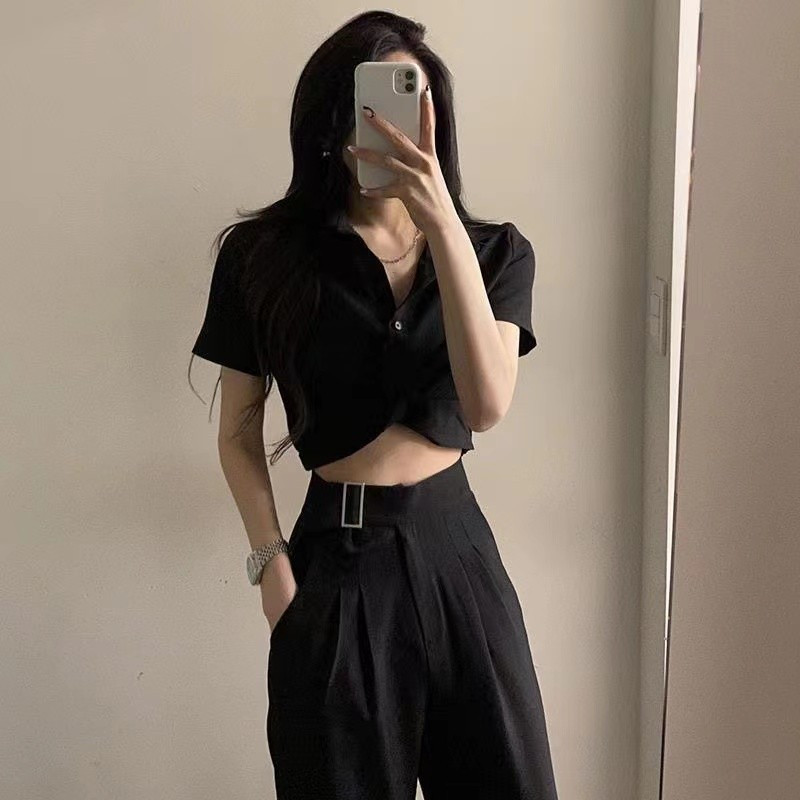 Летняя ретро дизайнерская рубашка, короткая футболка, французский стиль, воротник поло, тренд сезона