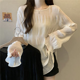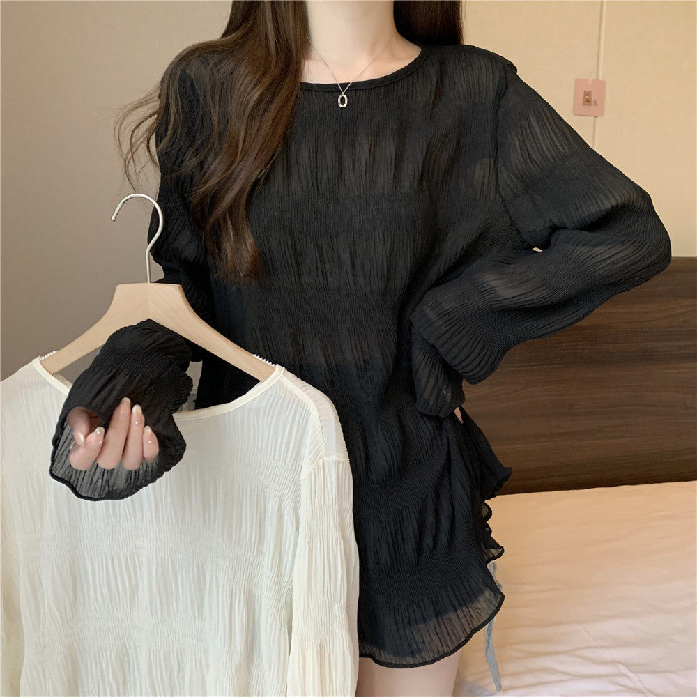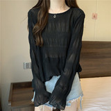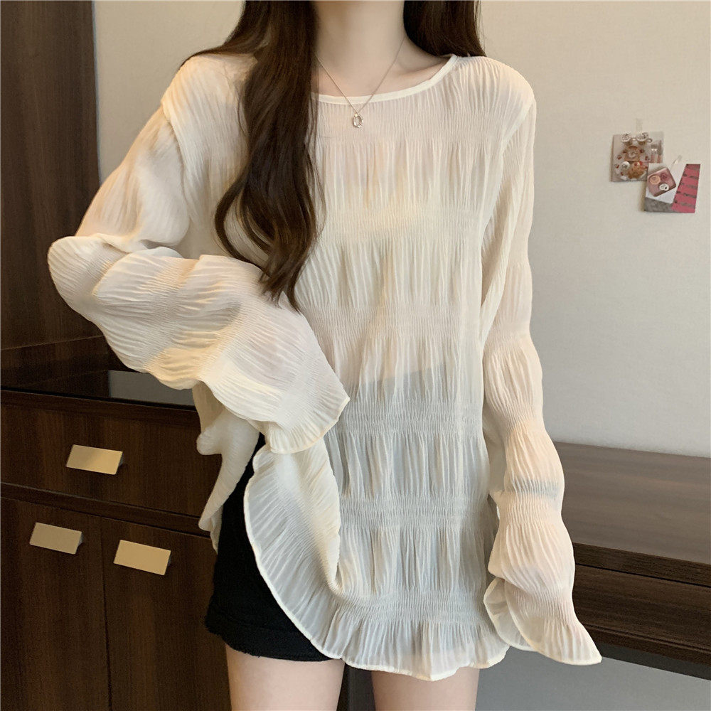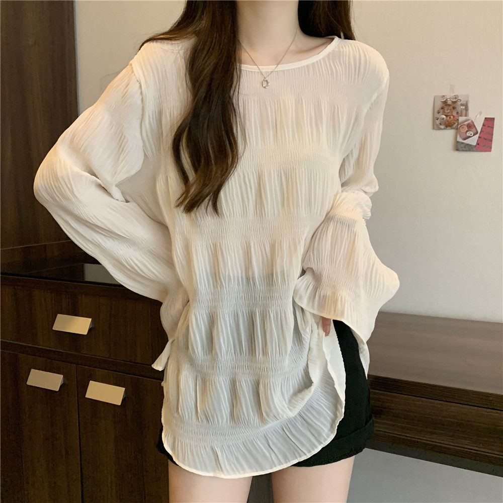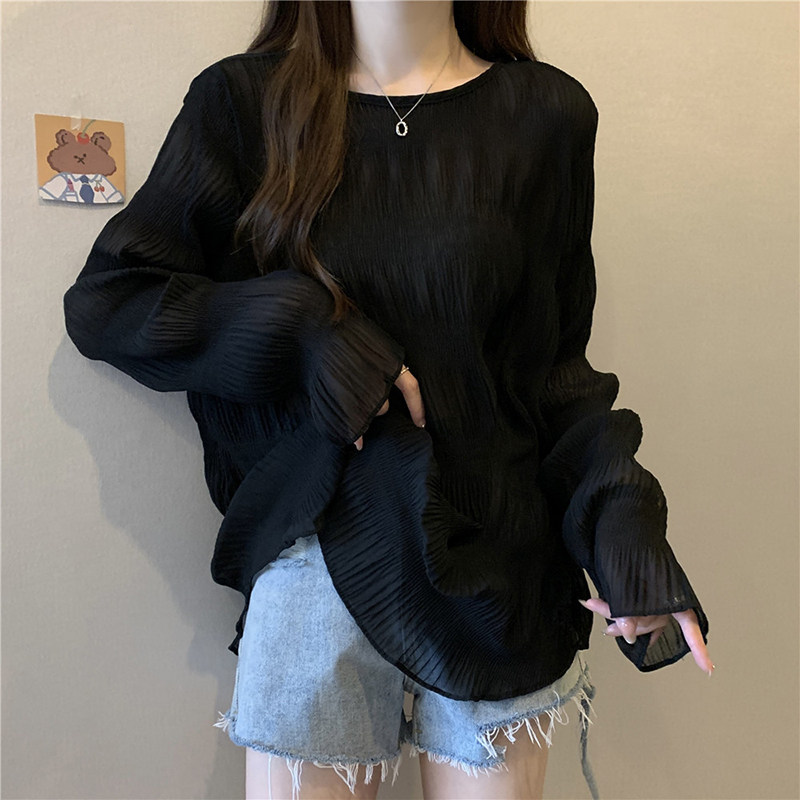Тонкая рубашка, длинный мегафон, футболка, большой размер, свободный крой, защита от солнца, средней длины